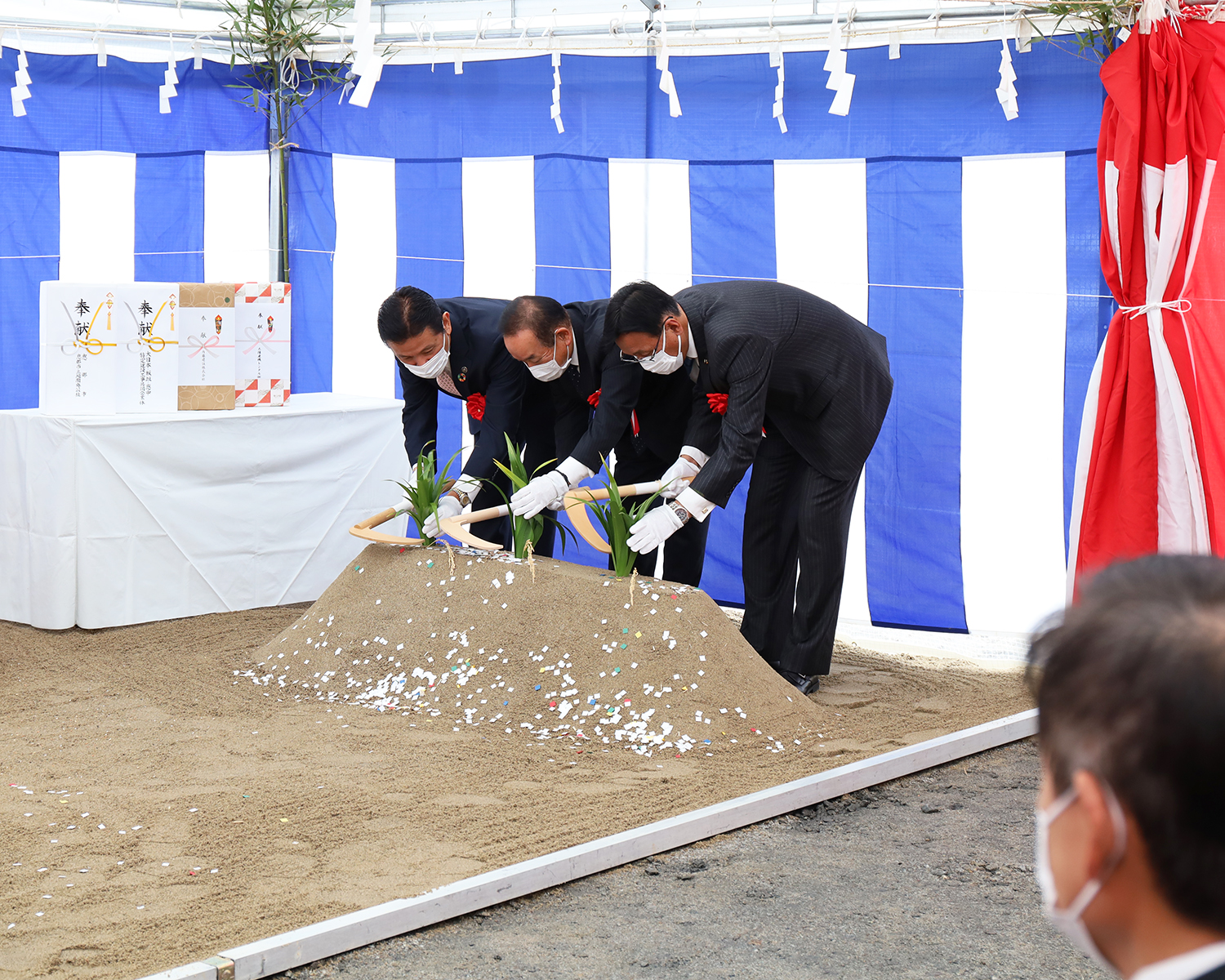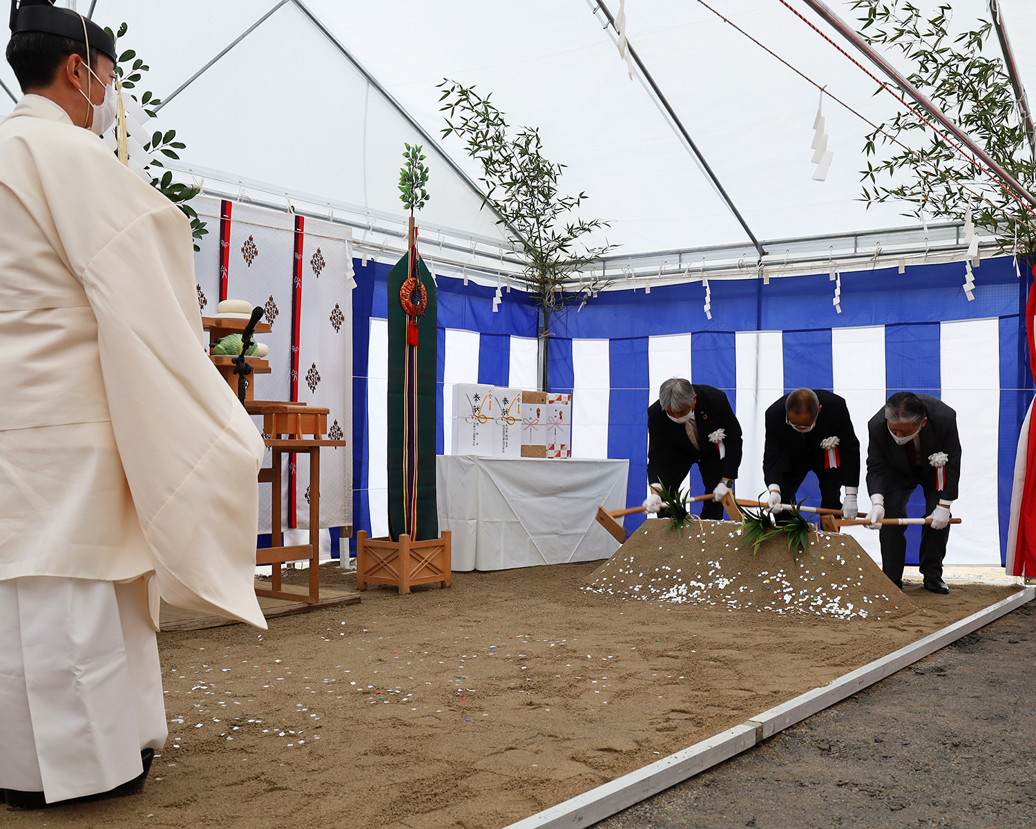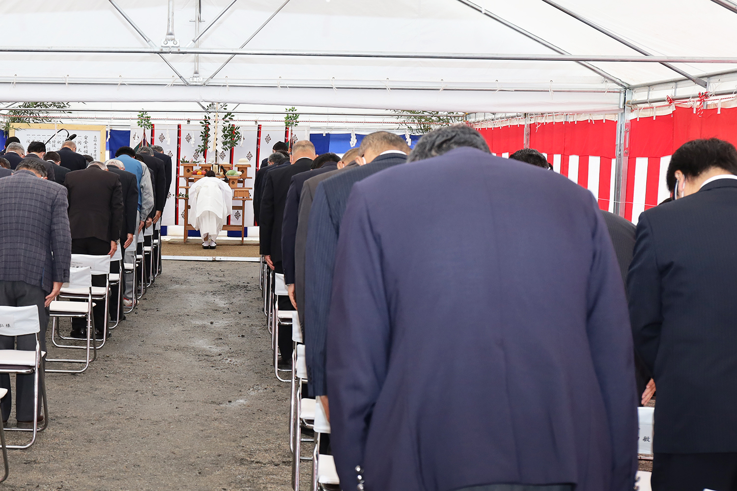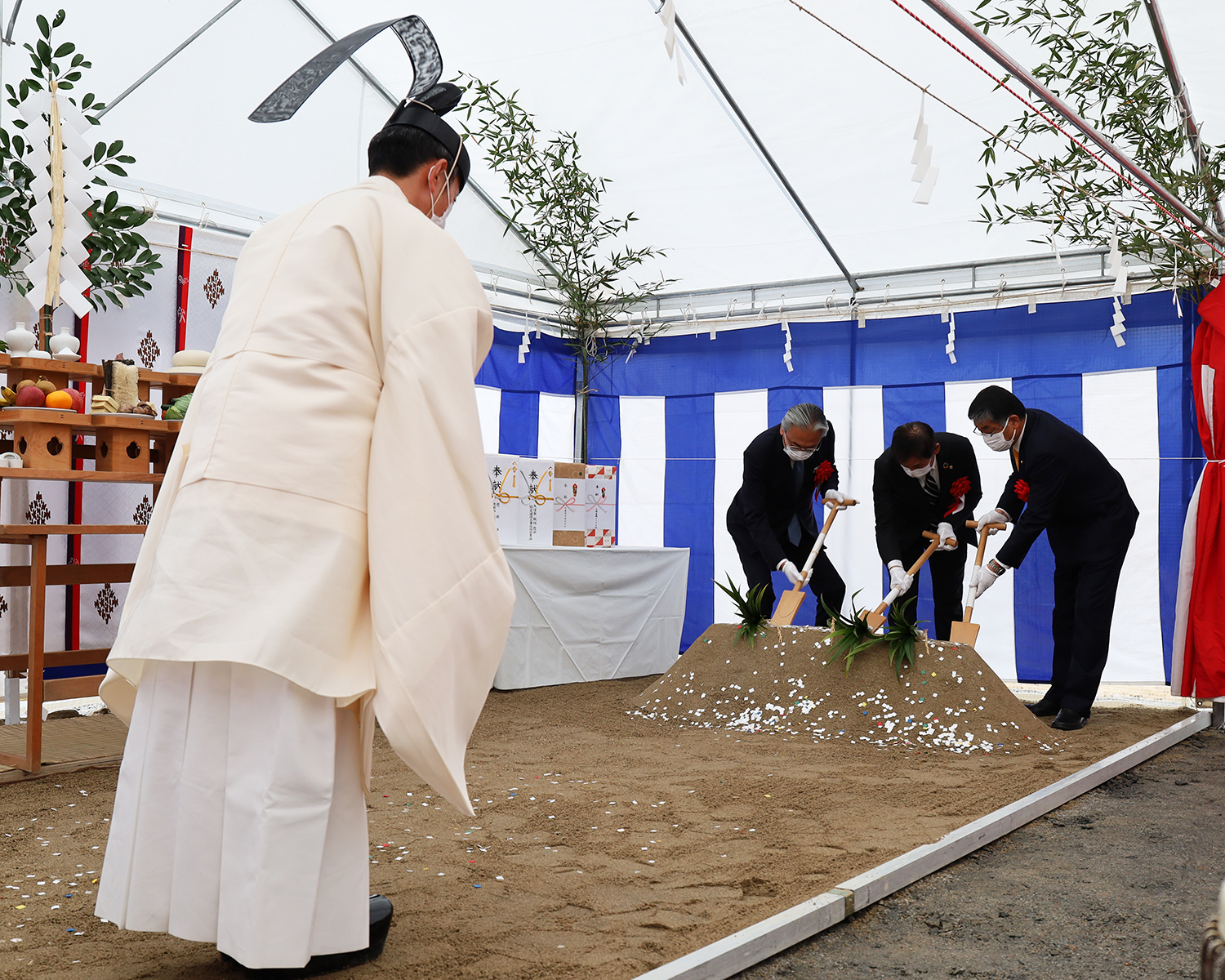 式典には、関係者56人が出席。地鎮の儀や玉串奉奠などの神事が行われた後、小坂市長は「多くの関係者の深い理解と協力により、本日を迎えることができた。市内6つ目の工業団地となる恵那西工業団地は、市が独自に開発を行う初めての事業。市民にとって働く場所は何よりも大切。活力ある市の経済の核となることを願い、実現を目指す」とあいさつ。主催者を代表して、大日本土木株式会社の田中克幸岐阜本店長は「本事業に関与できることは大きな誇りであり喜び。工事の重要性と必要性、意義を十分認識し、産業と自然が調和する当地域の素晴らしい環境の保全に努めます」と話しました。
