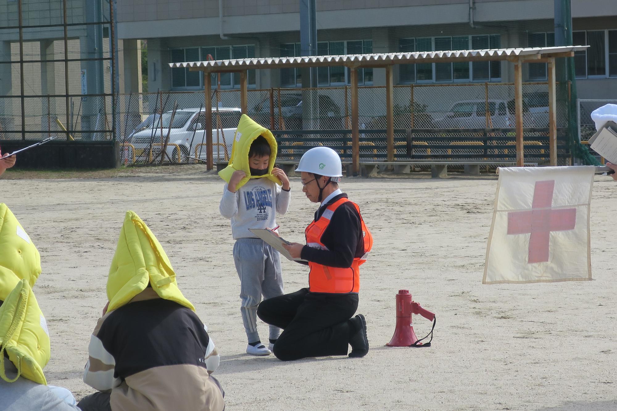 自分たちのクラスの避難状況を報告する練習をしました