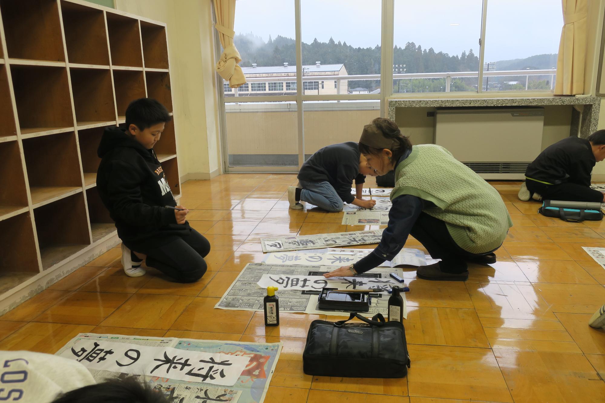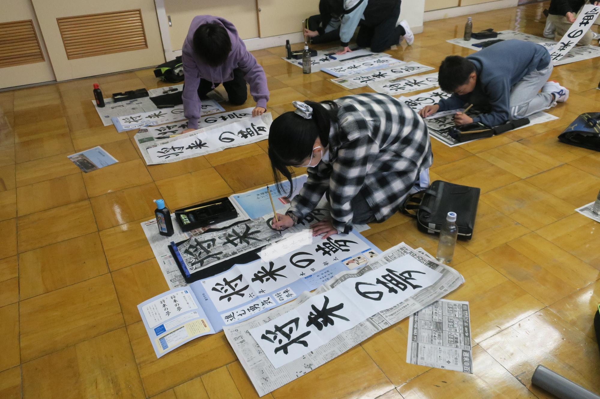 書き初め指導と書き初め大会