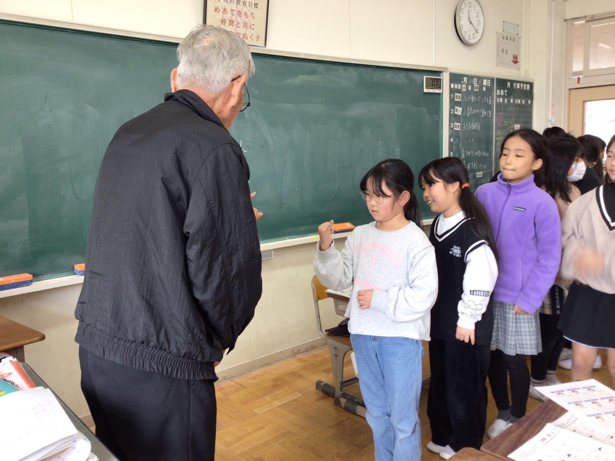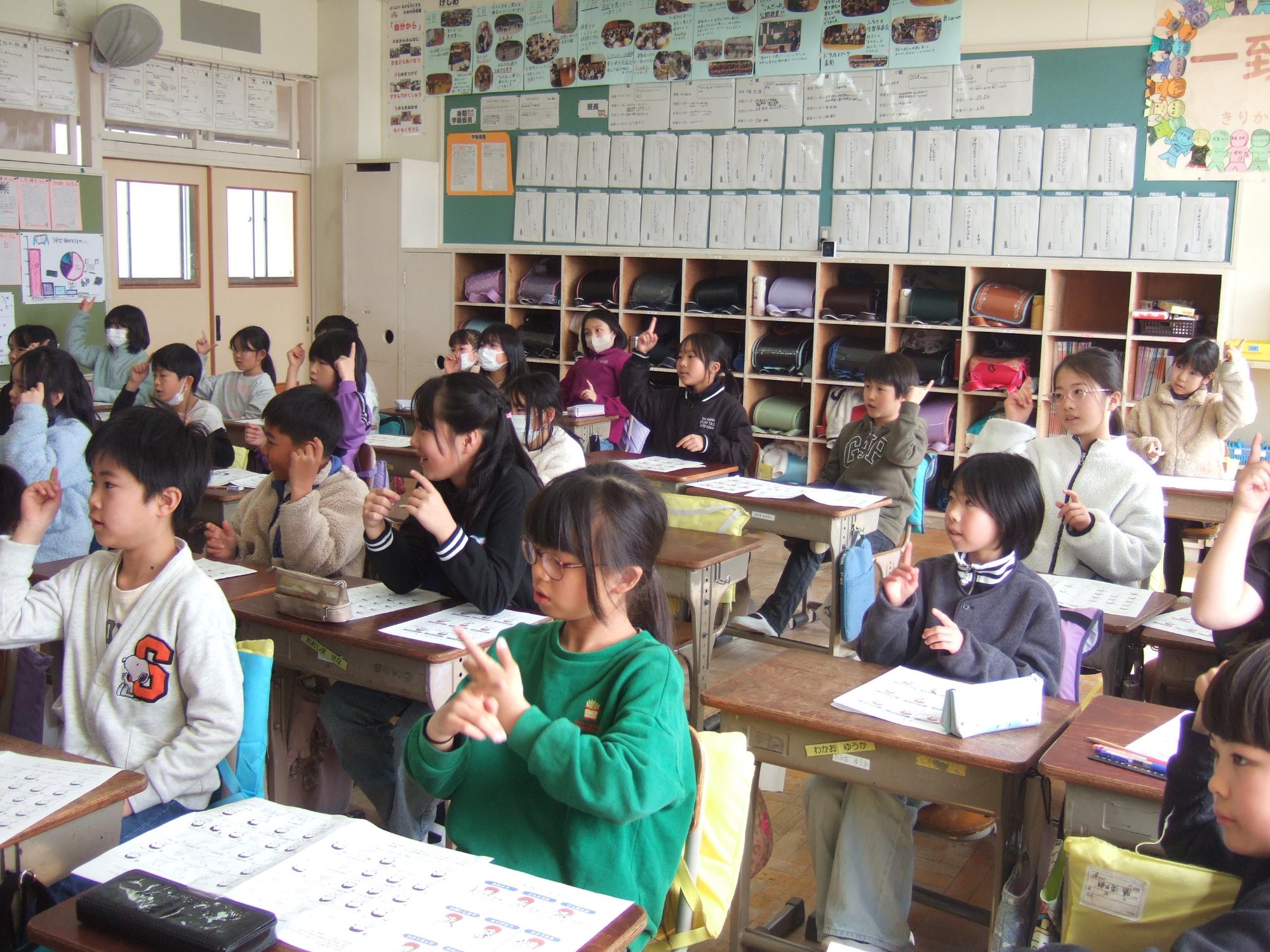 2月24日(火曜日)に、4年生が、手話体験をしました。外部から講師を招いての福祉に関わる学習は、これで3回目になります。手話とはどのようなものかを知り、自分の名前の指文字、明智小学校の校歌など、表現の仕方を教えていただきました。電話や来客の際はどうやってわかるのか、生活の中で困ることはないかなど、質問をしました。帰りにはグータッチをし、にこにこ玄関までお見送り。たくさんの方にお世話になって、豊かな学習ができることに感謝です。