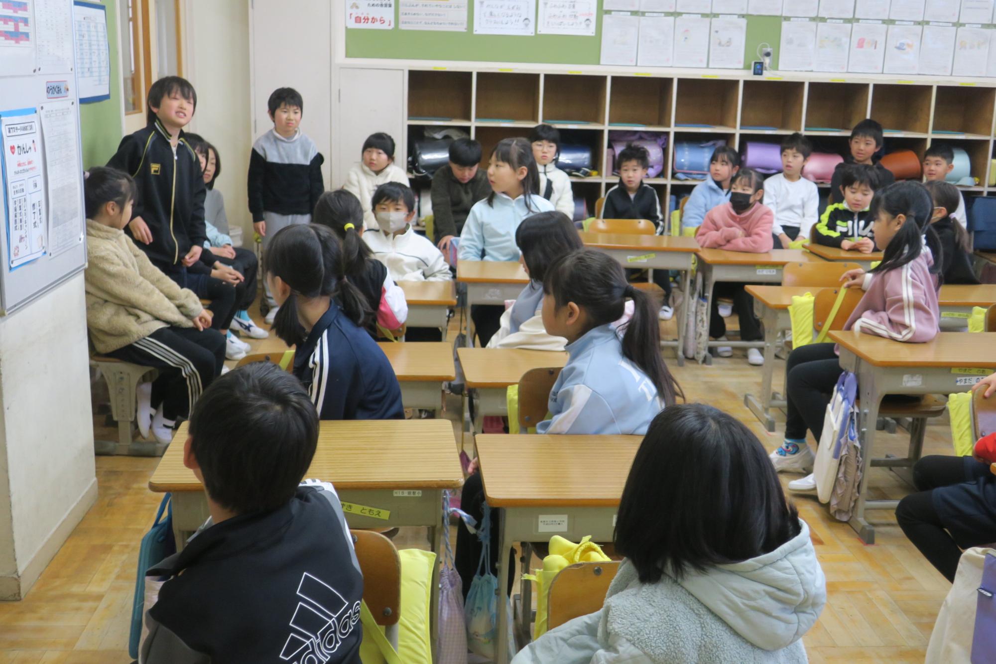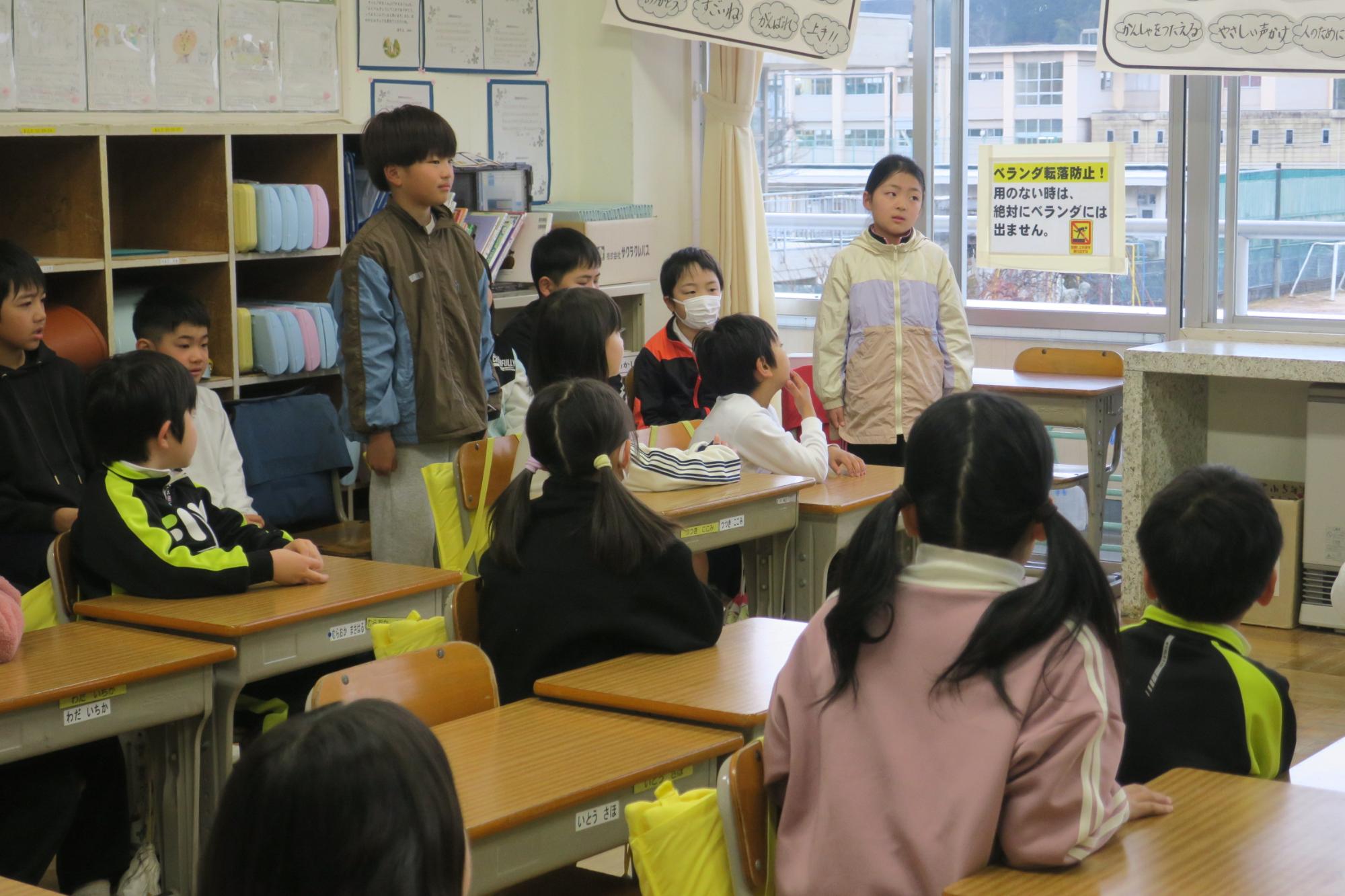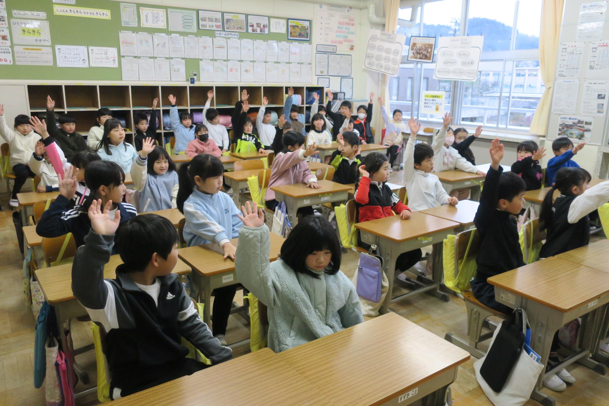 2月24日(火曜日)に、4年生が、手話体験をしました。外部から講師を招いての福祉に関わる学習は、これで3回目になります。手話とはどのようなものかを知り、自分の名前の指文字、明智小学校の校歌など、表現の仕方を教えていただきました。電話や来客の際はどうやってわかるのか、生活の中で困ることはないかなど、質問をしました。帰りにはグータッチをし、にこにこ玄関までお見送り。たくさんの方にお世話になって、豊かな学習ができることに感謝です。