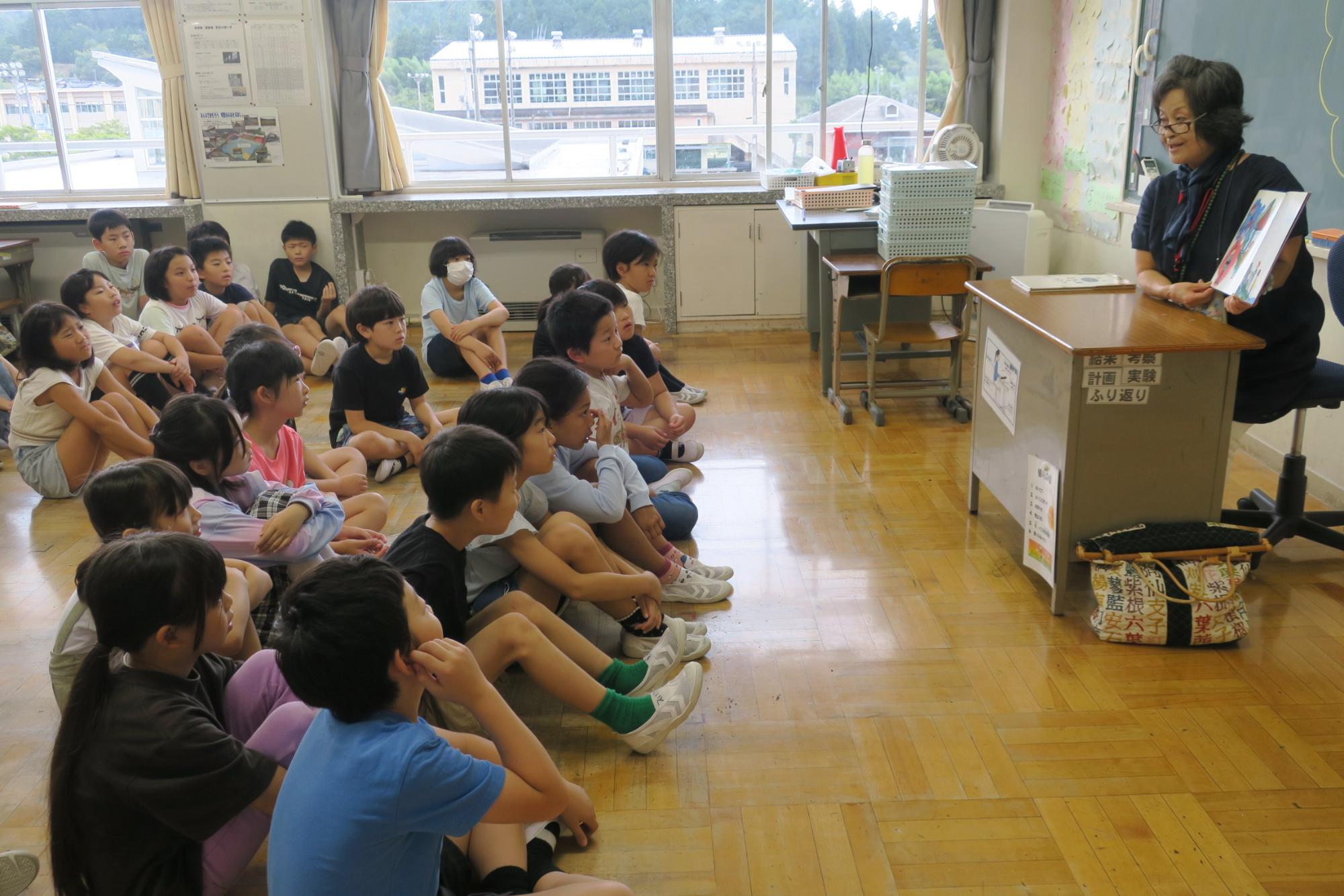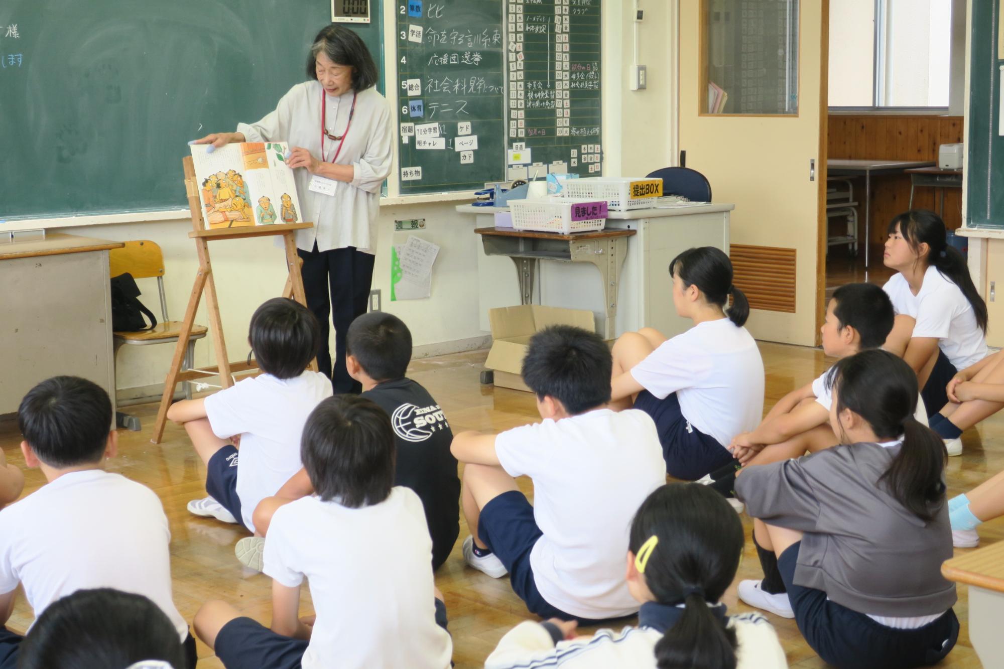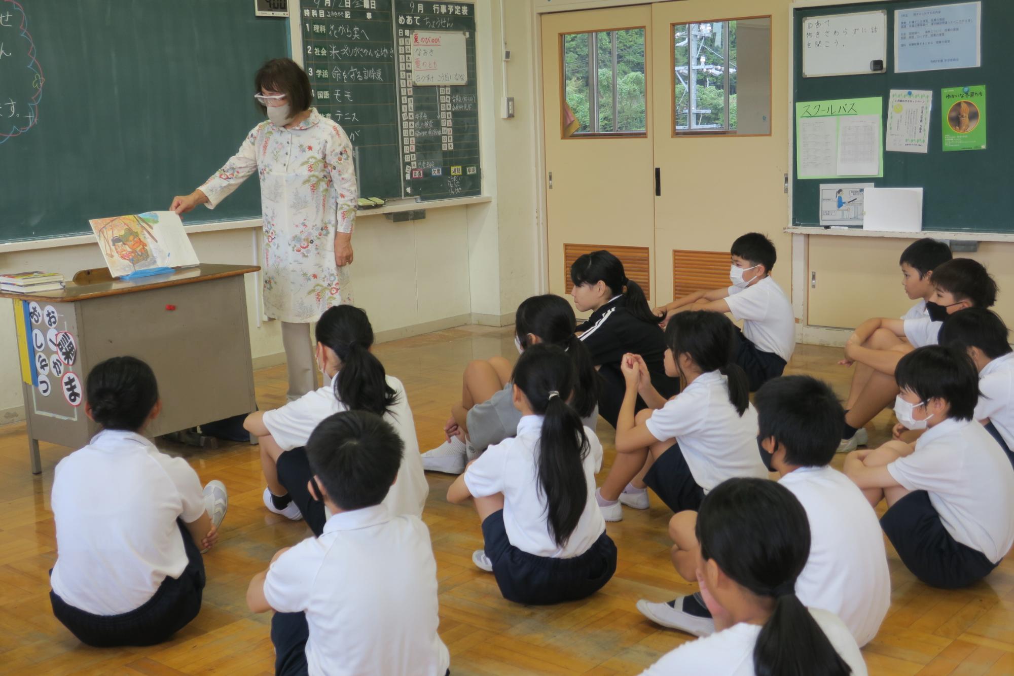 今年度4回目のボランティアさんによる読み聞かせがありました。毎回、担当の学年に合わせて本を選んで来てくださり、短い時間の中ですが、楽しく読み聞かせをしたりクイズのように子供たちに質問をしながら読んでくださったりしています。また、持参された本の紹介をしてくださる場面もあり、子供たちはにこにこしながら聞いています。いつもありがとうございます。