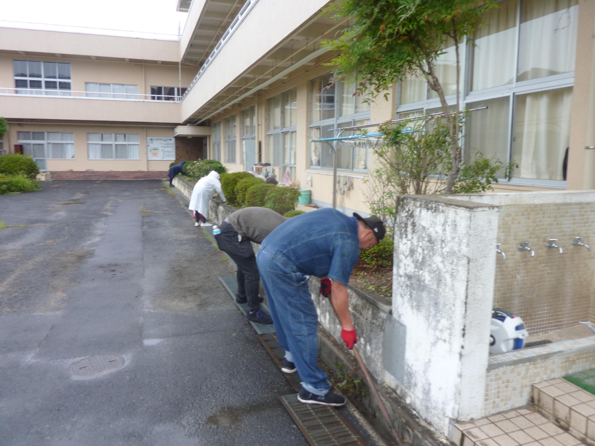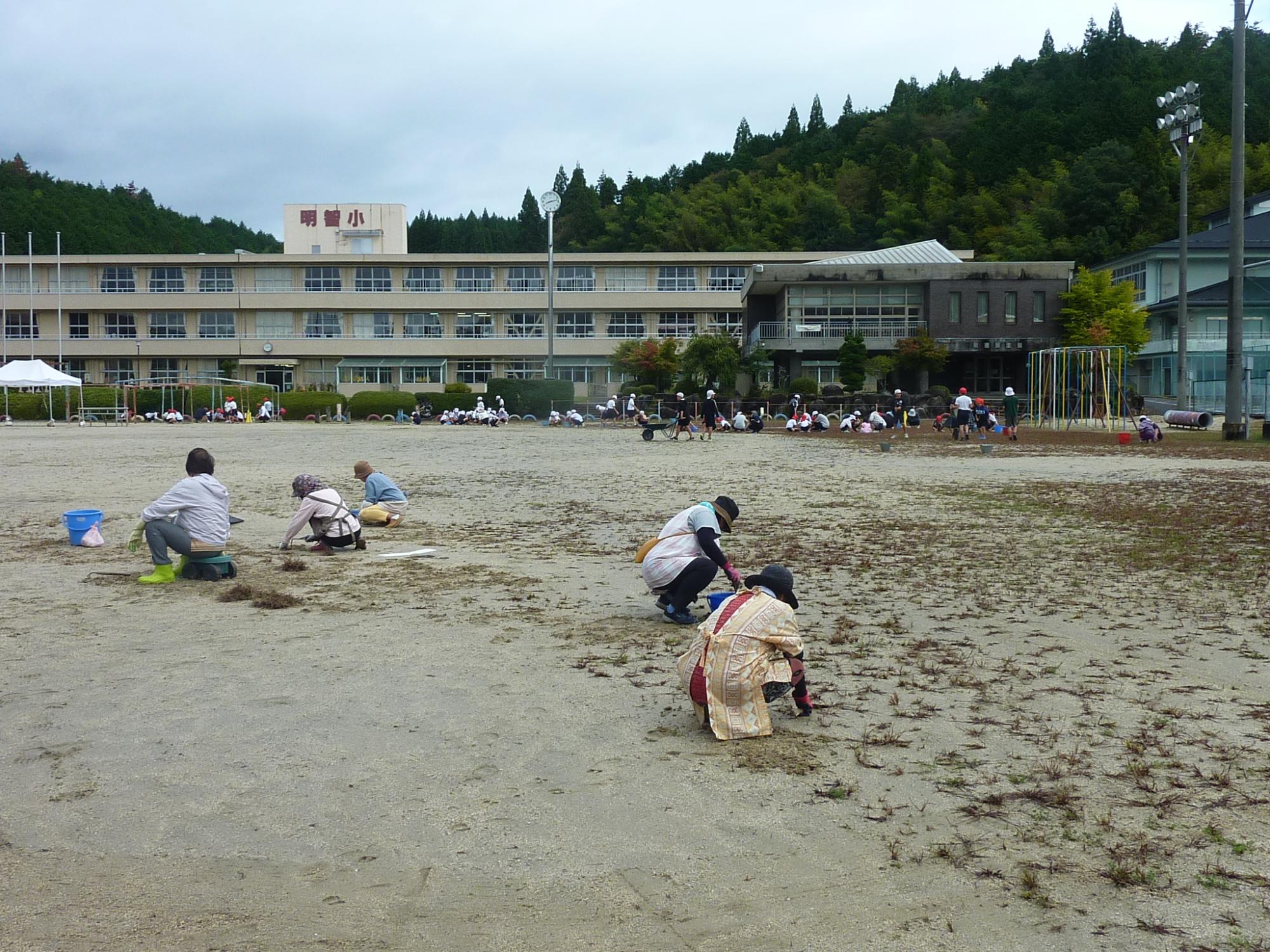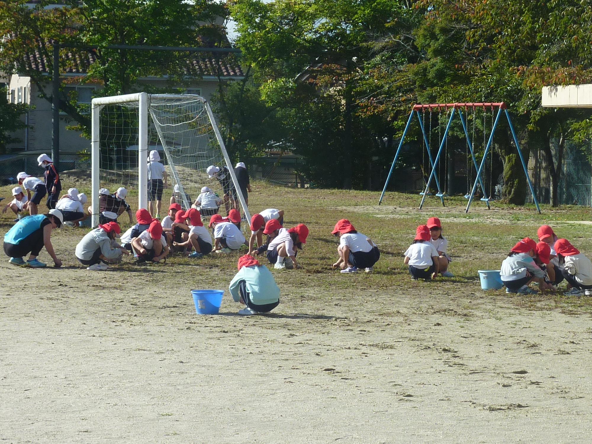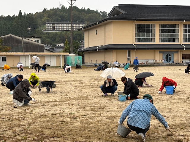 小雨の降る中での作業になりましたが、10月4日(日曜日)にはPTA奉仕作業を、そして本日を含め2回ほど、子供たちと一緒に地域のボランティアの皆さんのお力も借りて運動場の草取りを、ありがとうございます。児童数が少なくなり、子供たちや教職員による草取り・環境整備では十分手が回らず、運動会を気持ちのよい環境で行えるようにというタイミングで作業をしてくださり、大変助かります。また、日頃から、毎日のように草取りや落ち葉の掃除など、お力添えをいただいている近所の方もいらっしゃいます。この場を借りまして、改めてお礼申し上げます。