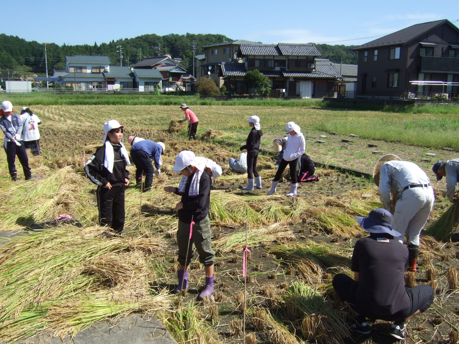 学校運営協議会の会長さん自ら、稲刈りの仕方を教えてくださいました。