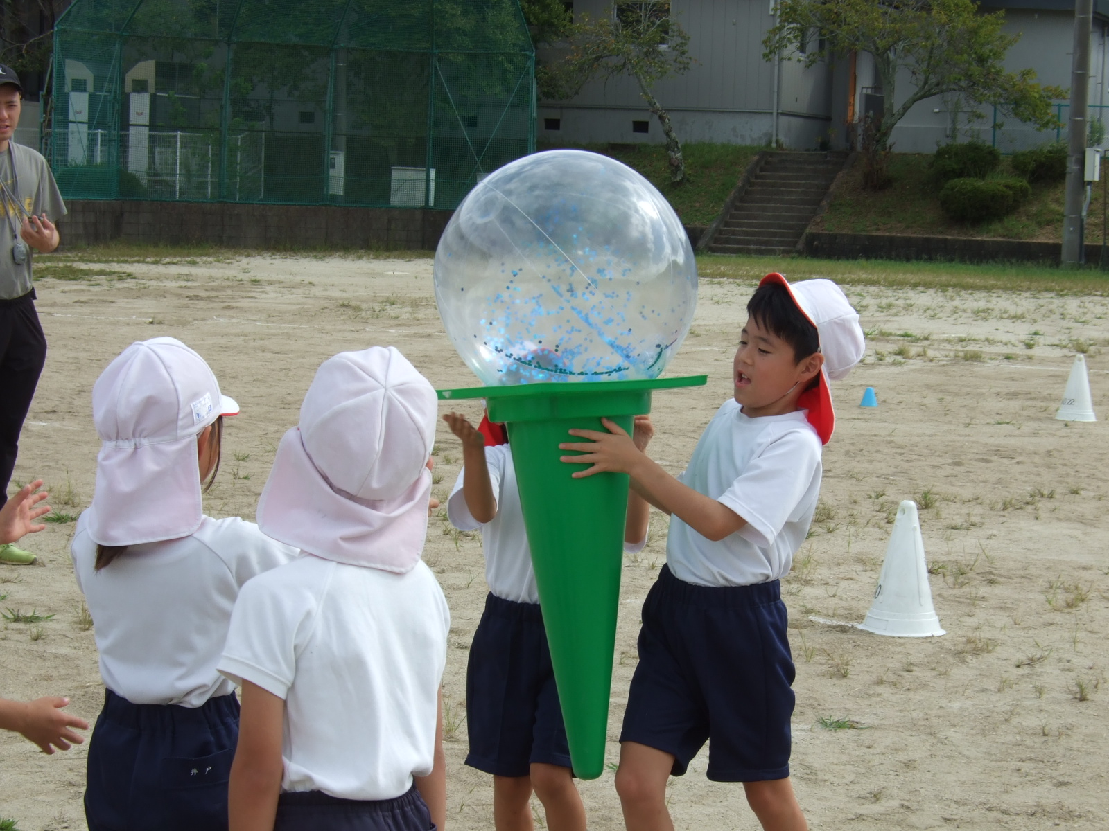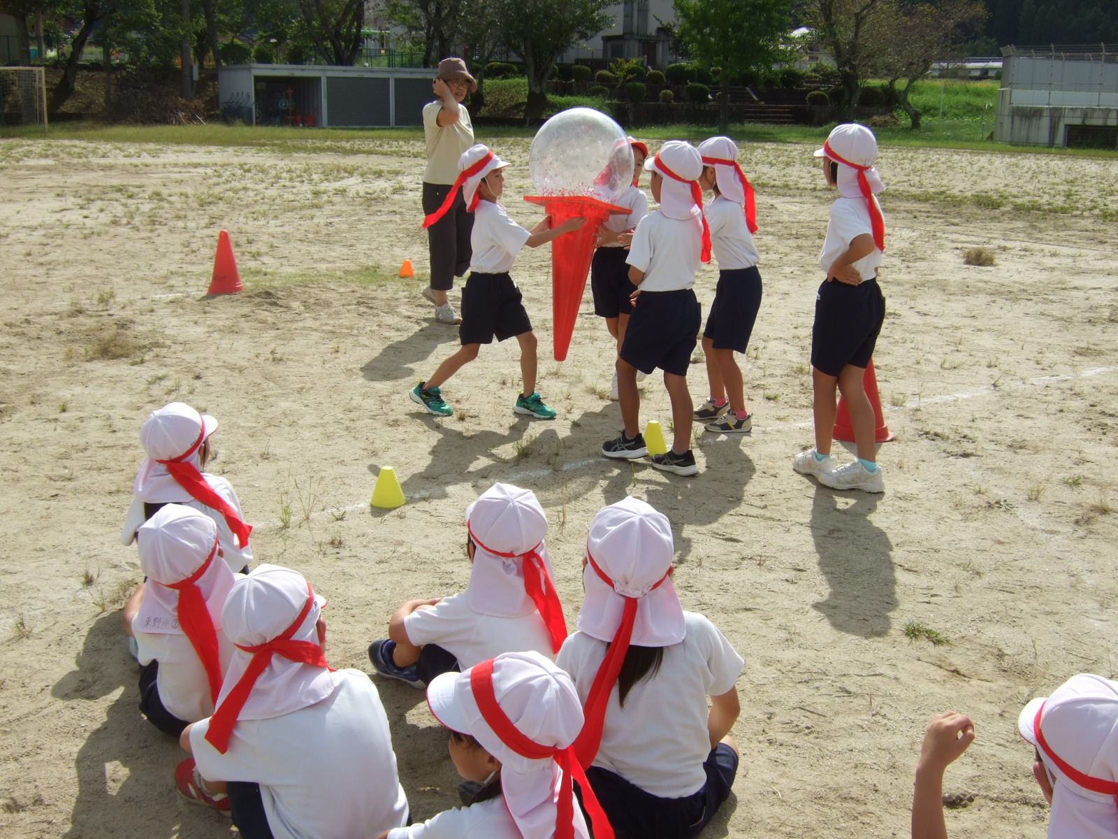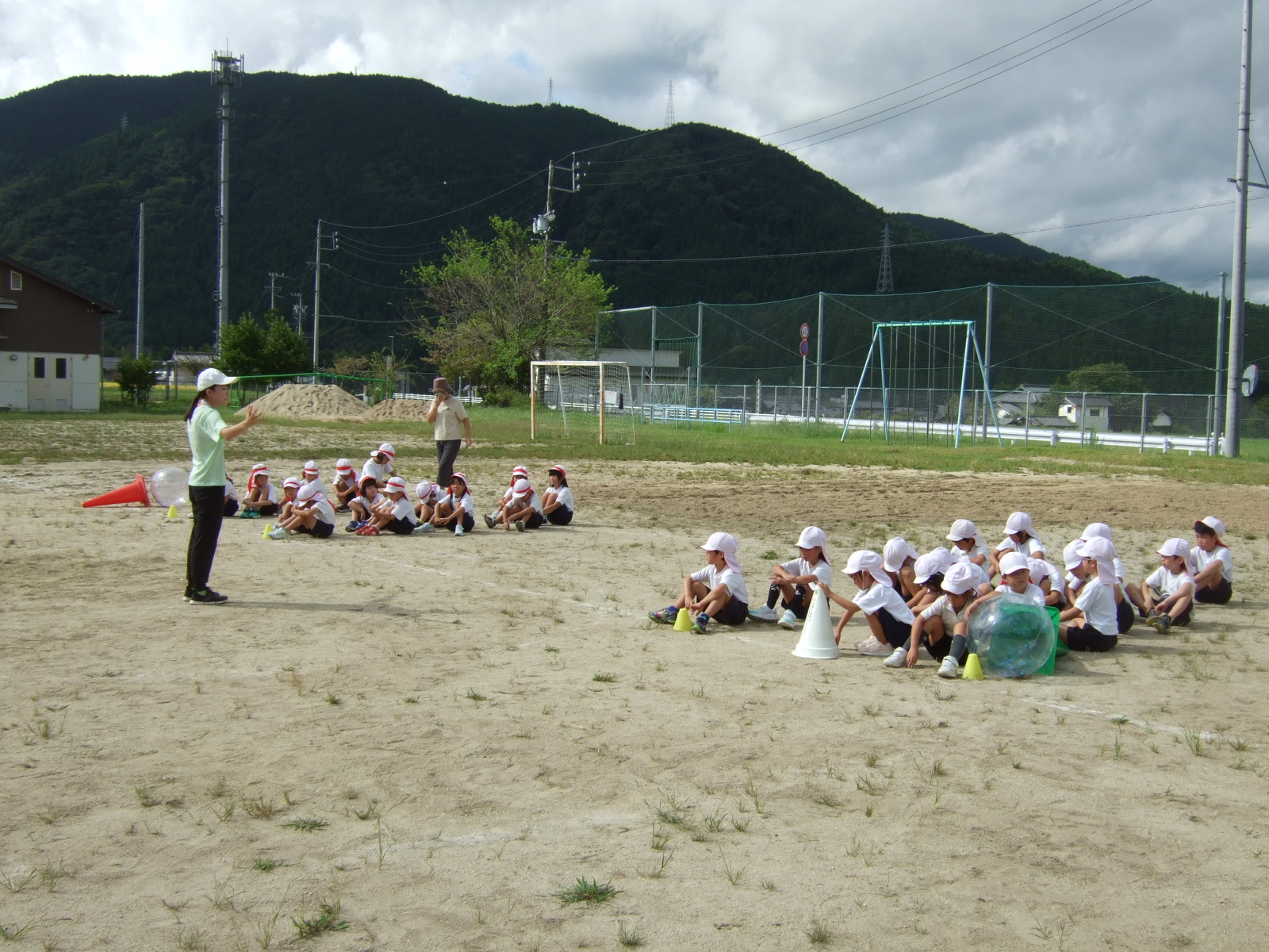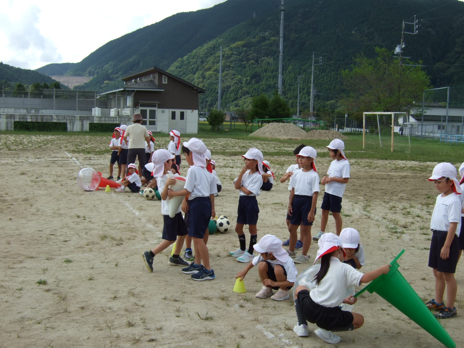 9月19日運動会練習でアイスクリーム(1・2年) 更新日:2025年09月20日 運動会の学年練習も、今週からは、グランドで行われています。今日は、1・2年生が学年種目(とどけ❕つなげ!アイスクリーム)の練習中です。 学年練習がスタートしました。 今回は、あまり、内容を伝えてしまうと、当日のお楽しみがなくなってしまうといけないので、写真で様子のみお伝えします。