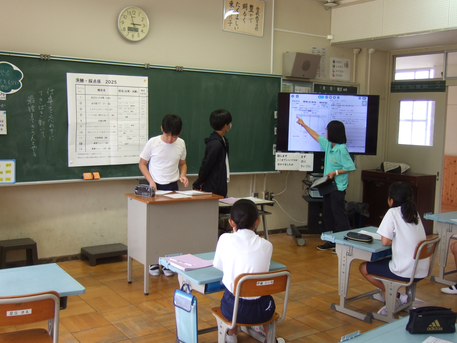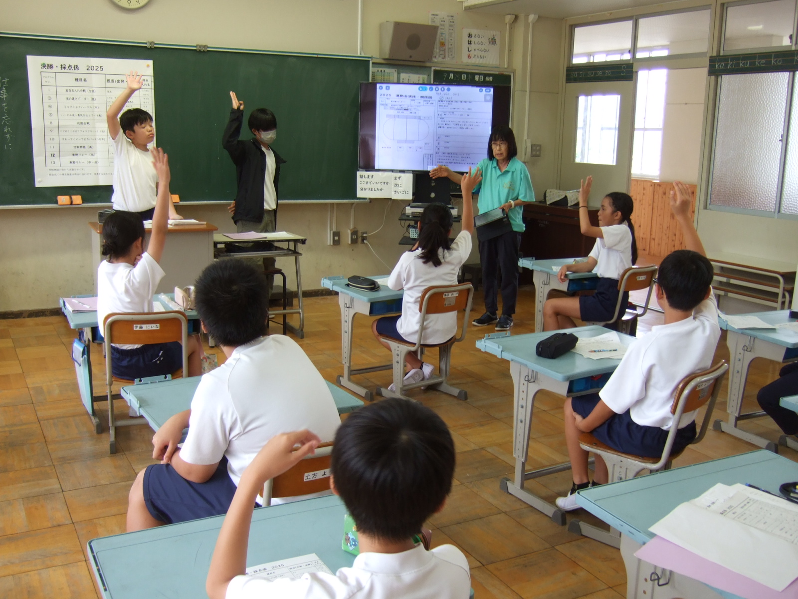 運動会を縁の下で支える係活動。4・5・6年生が一生懸命に覚えて、運動会を創り出してくれています。
