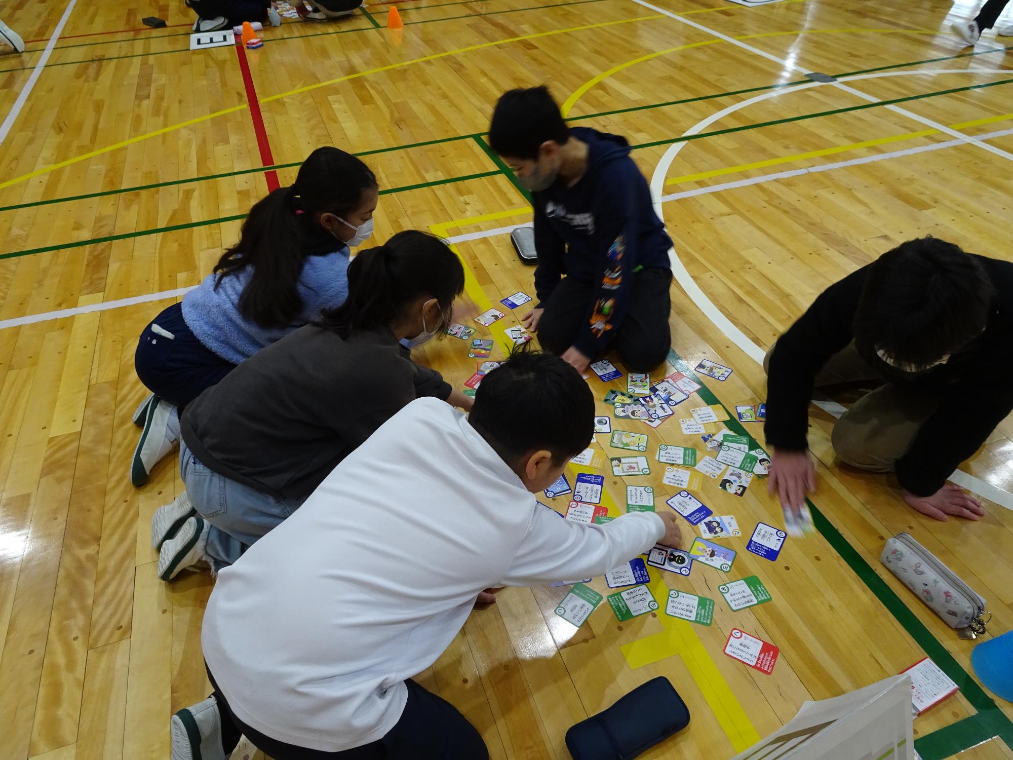 情報モラルのカルタをとりながら、一つ一つのインターネット上で気をつけることを学んでいきました。