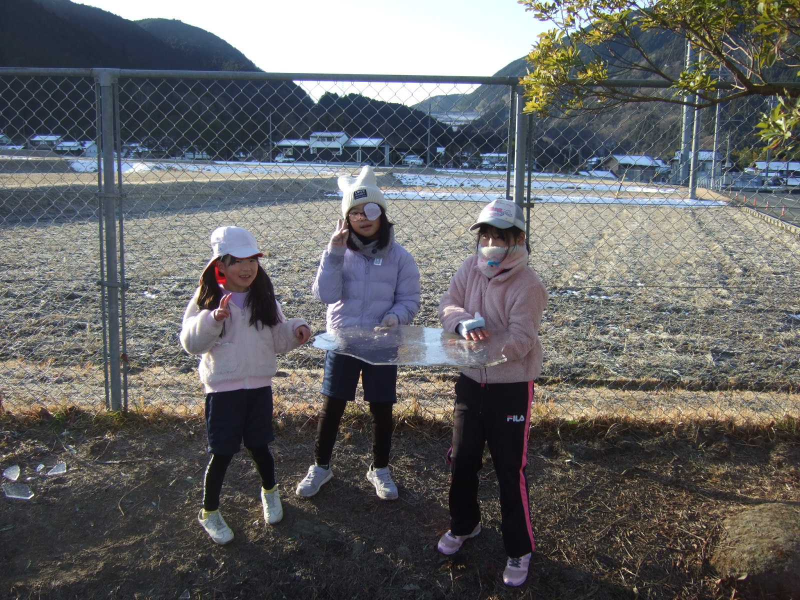 あわせて、氷が割れて池や川に落ちないように、危険があること、近寄らないよう指導しましたが、お家でももう一度指導をお願いします。