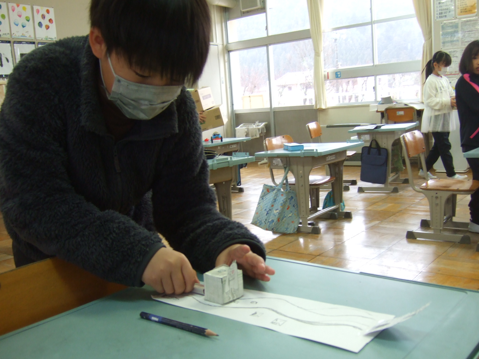箱の中に入っている磁石の反発を上手に利用して、箱が道からはみ出ないように操作するゲームです。勉強したことを上手に利用しているのにびっくりです。(未来の発明家かも・・・将来、楽しみです)