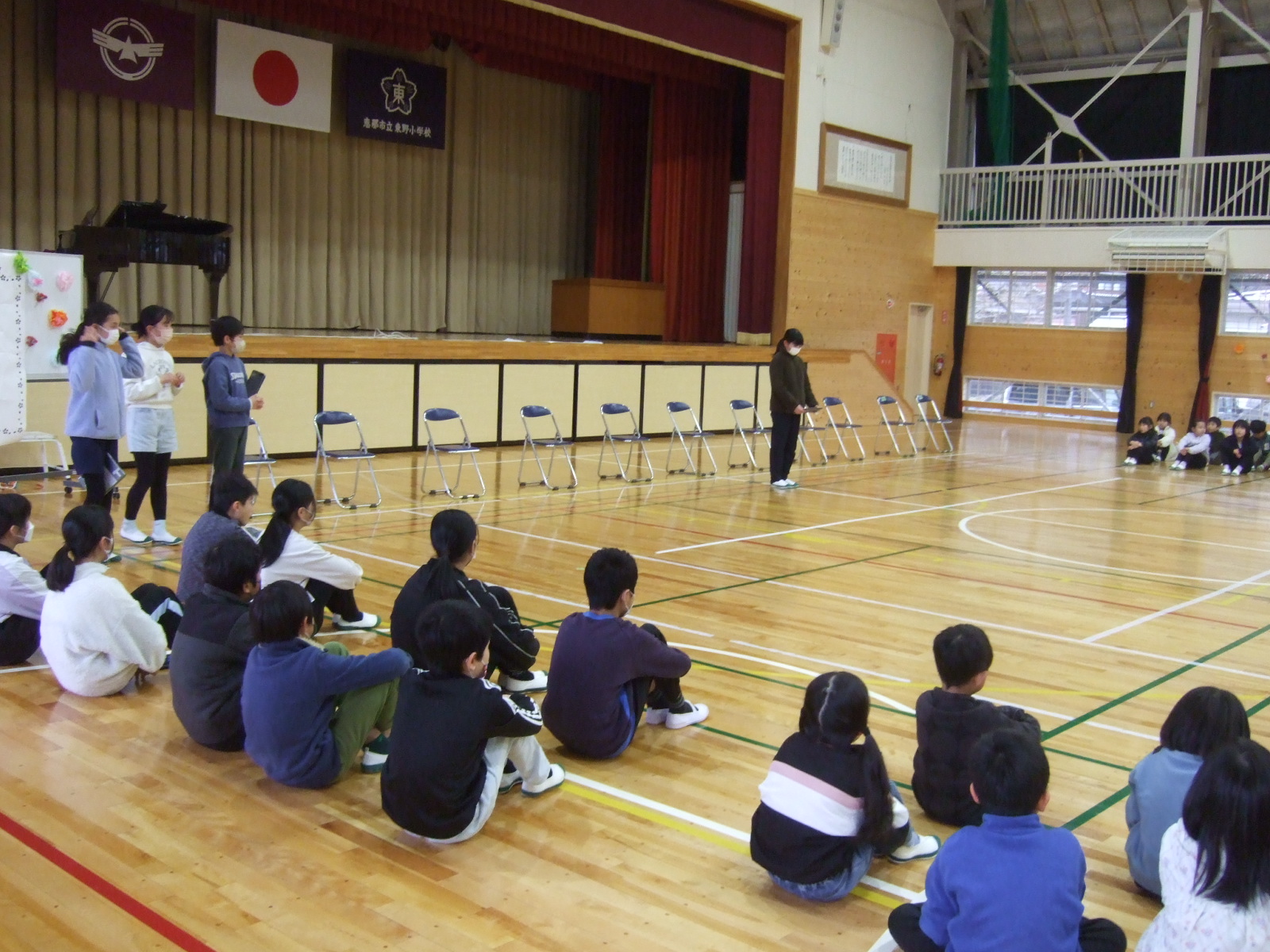 5年生が体育館中に届くはきはきとした声で司会進行です。