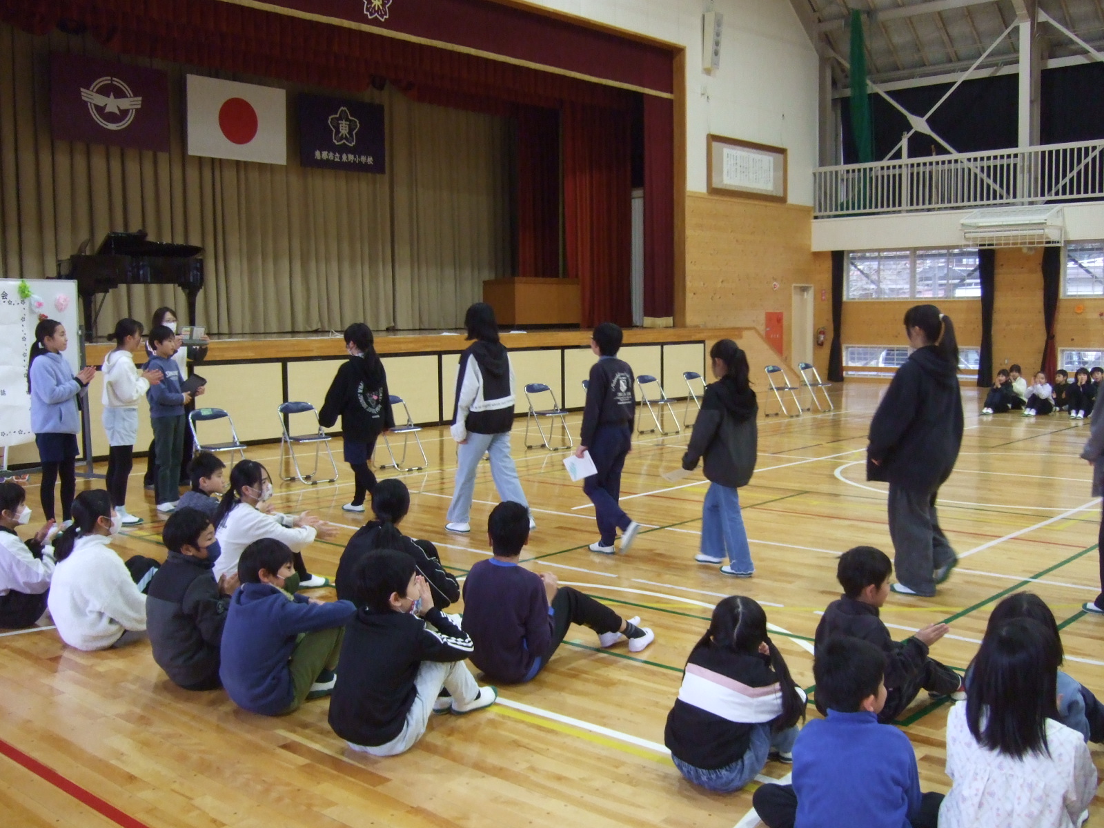そして、全校で「大切なもの」を一緒に歌いました。考えてみると、6年生は卒業まで今日を入れて15日です。これまで、6年生がリーダーとして、忙しくても裏でいっぱい考えて、汗をかき、準備したり、みんなが良くなるように活動してきました。そして、ダメなことにはダメと注意してくれました。そんな姿に、憧れてきた1年生から5年生。そんな姿を見て、まねて行動してきたからこそ、東野小学校はどんどん良い学校になってきました。あと15日しかありませんが、6年生の姿を最後まで心に焼き付けて、自分の成長につなげてほしいですね。