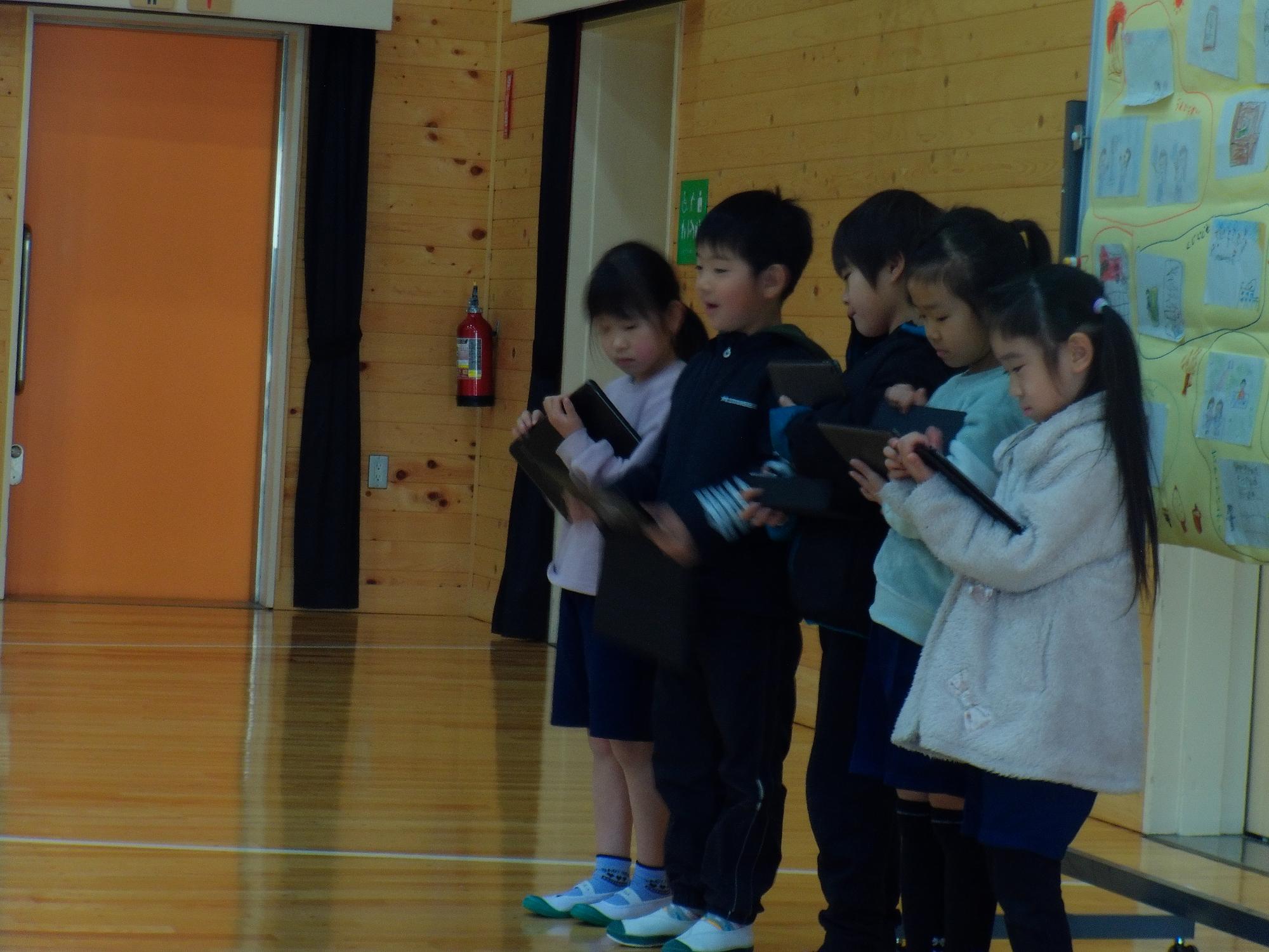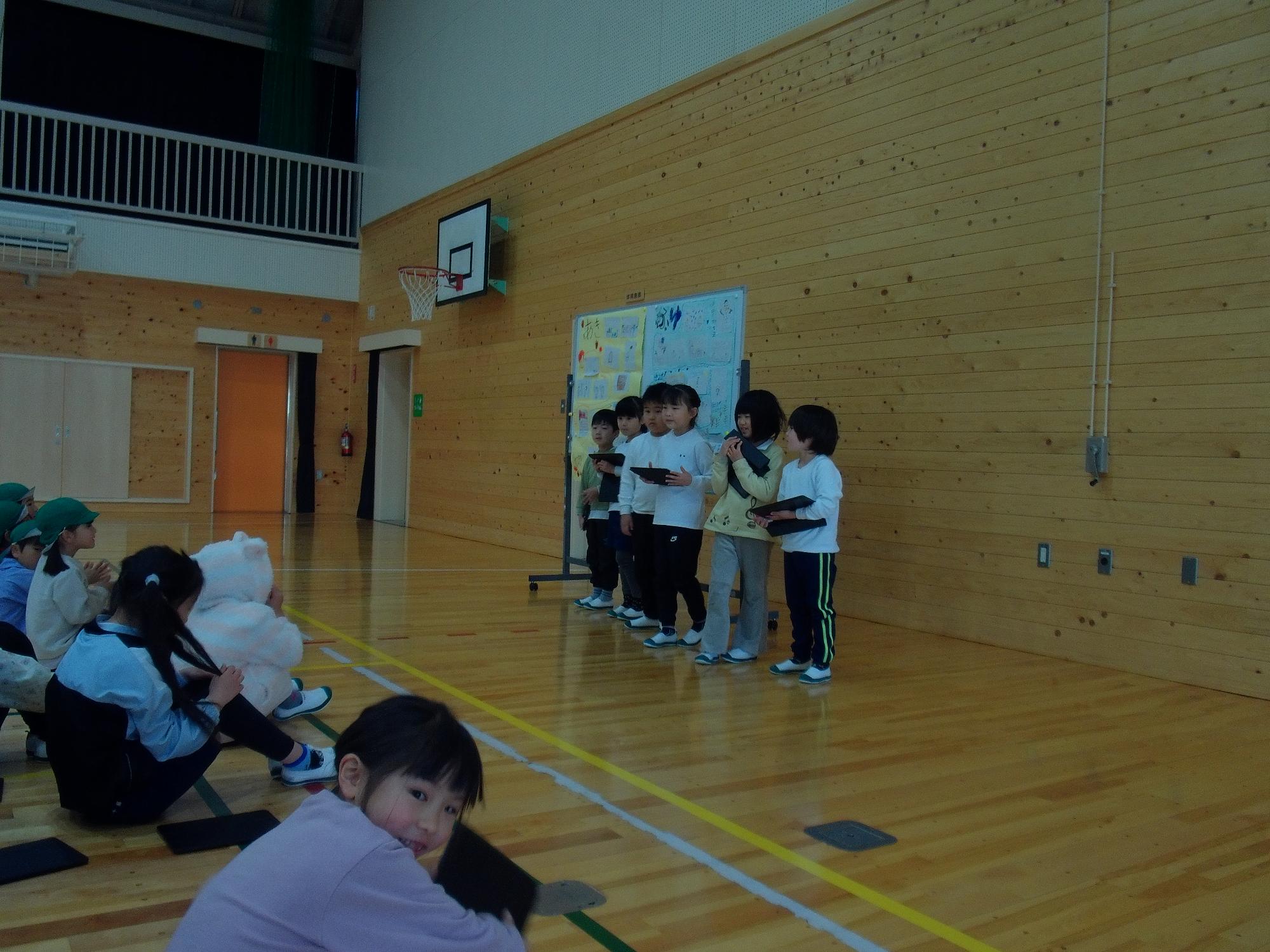 3月4日1年生がこの一年を年長さんに紹介(1年生活)