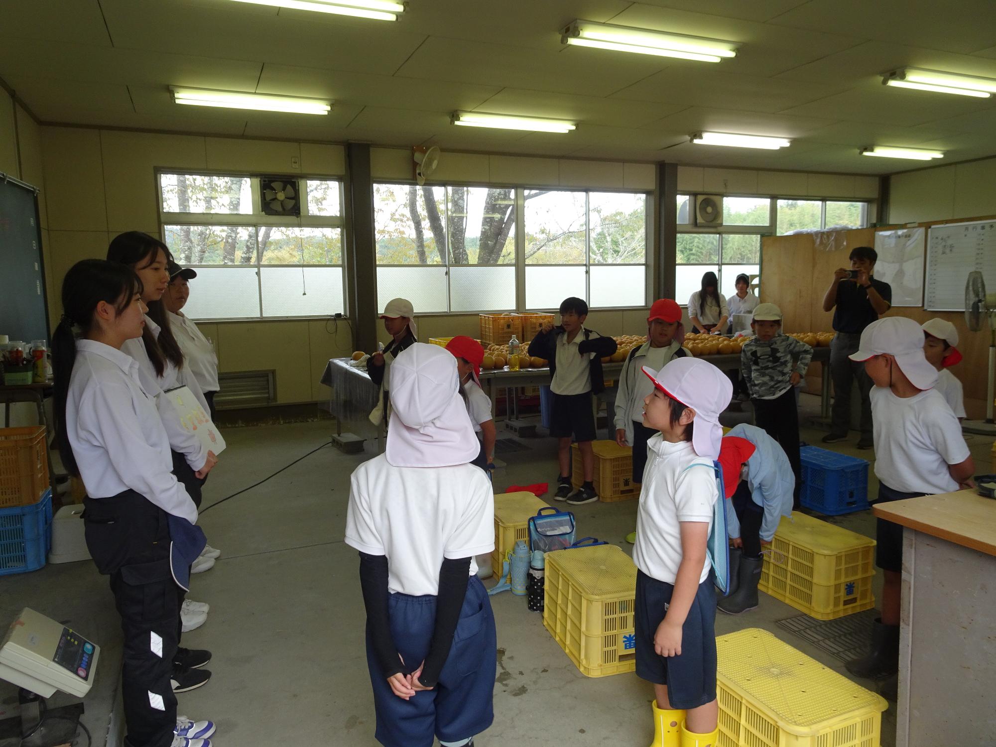 3年生は、恵那農業高校のお兄さんお姉さんにお世話になって、農園で栗拾いと栗の拾い方・よい栗の見分け方などを教えていただきました。