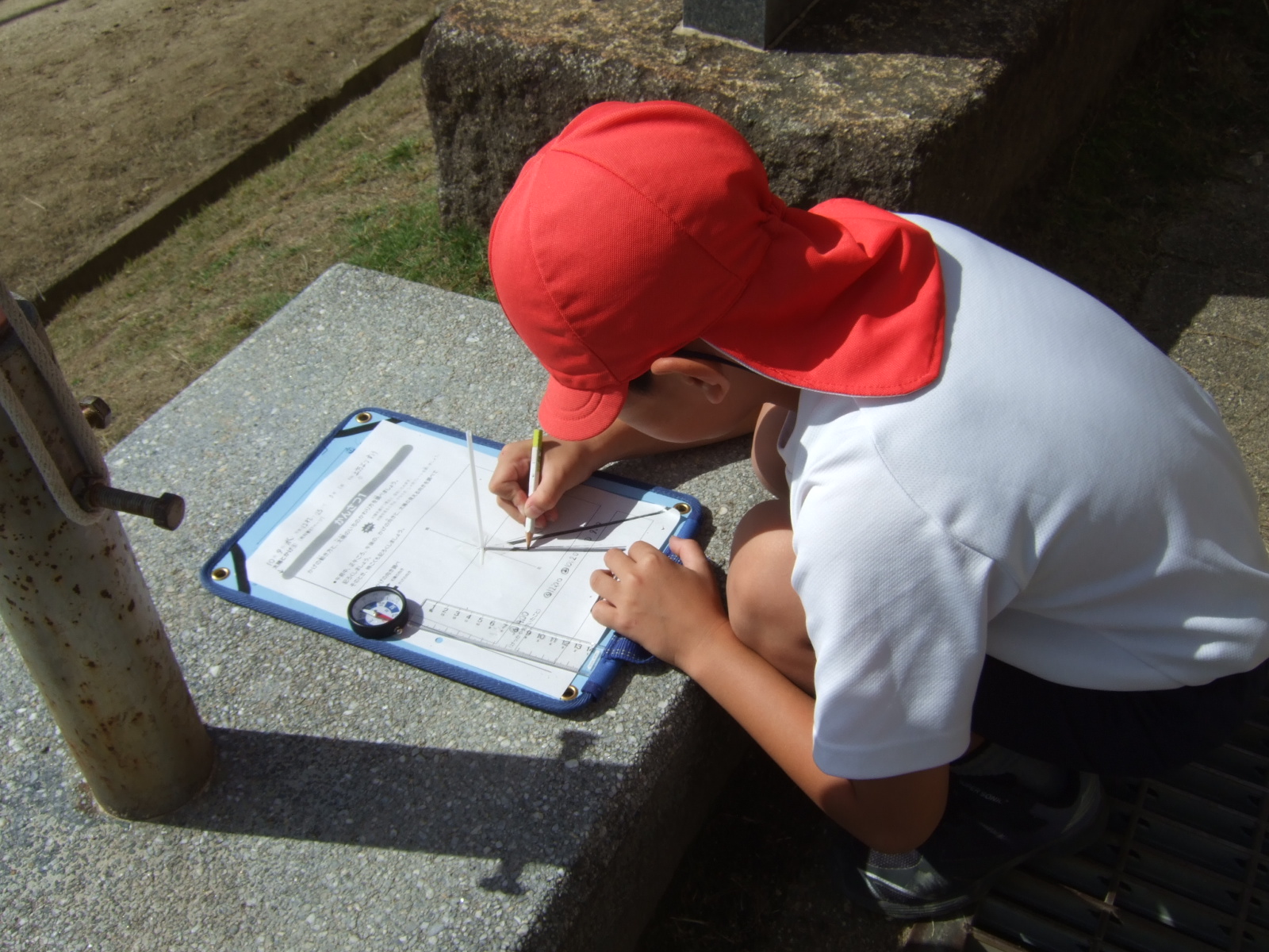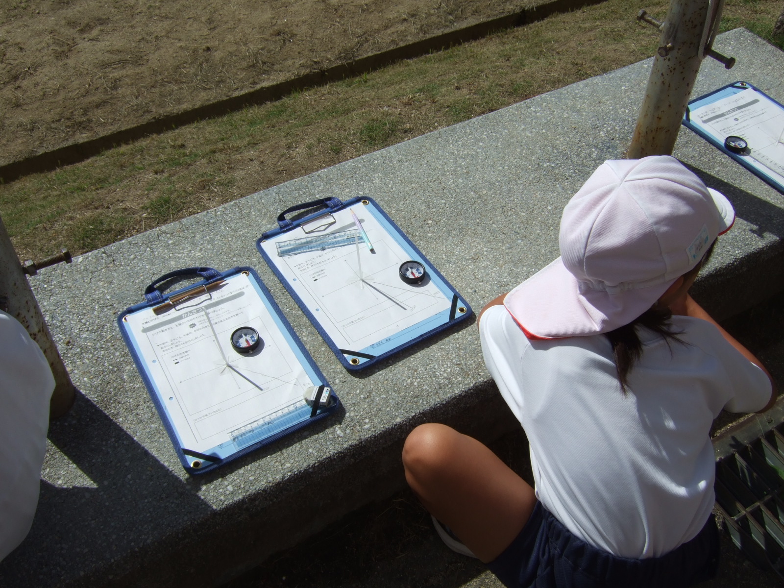 しっかりと、方位磁針で記録用紙の向きを確認して・・・