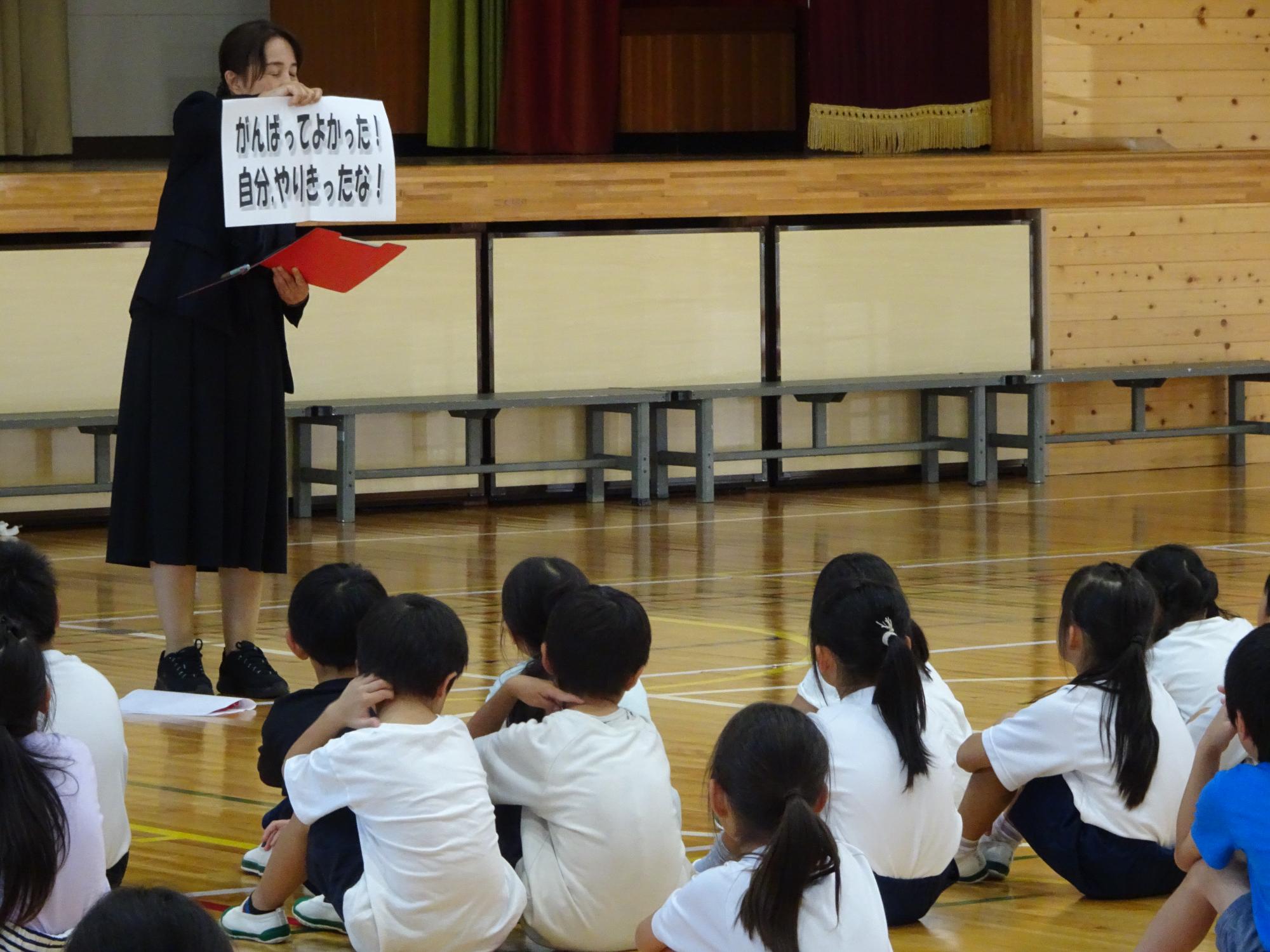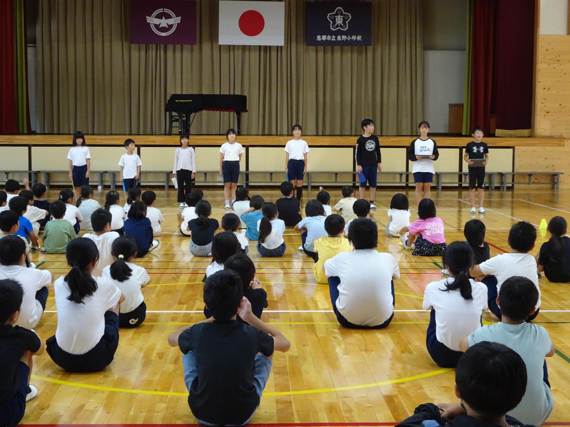 東野小学校は2期制をとっています。今日は前期の最終日。終業式を行いました。(その後、クラスでは通知表をもらいます。)