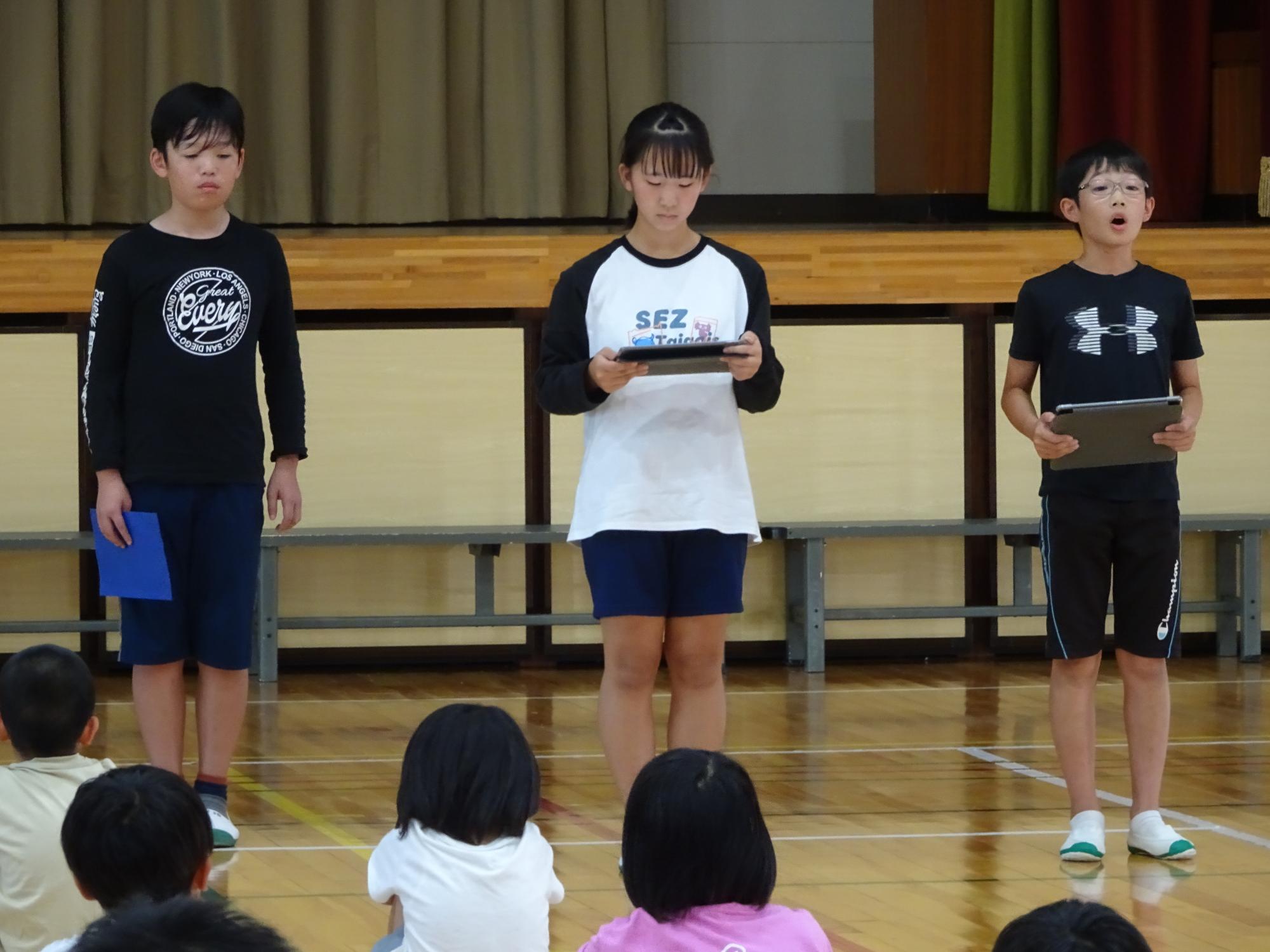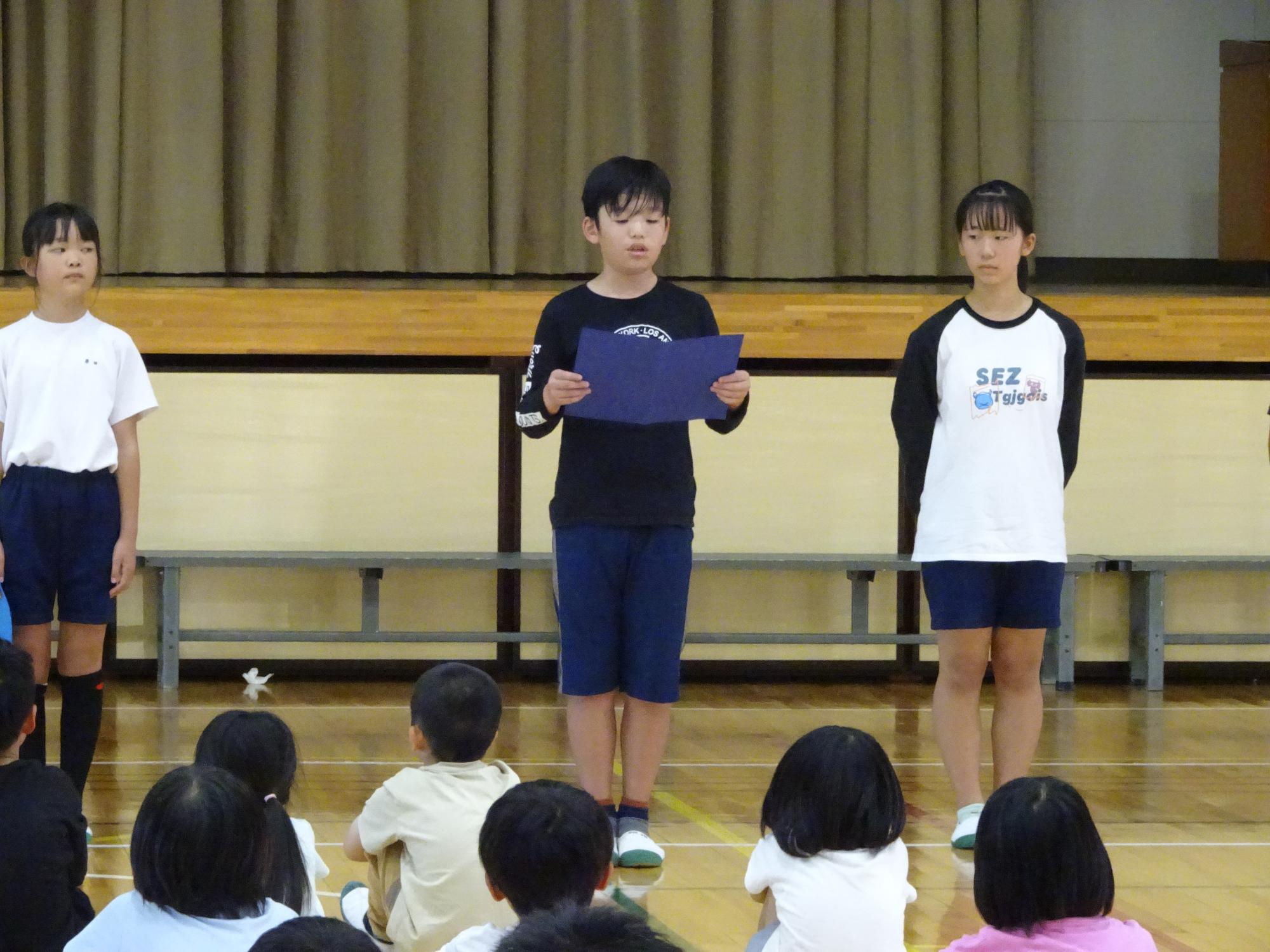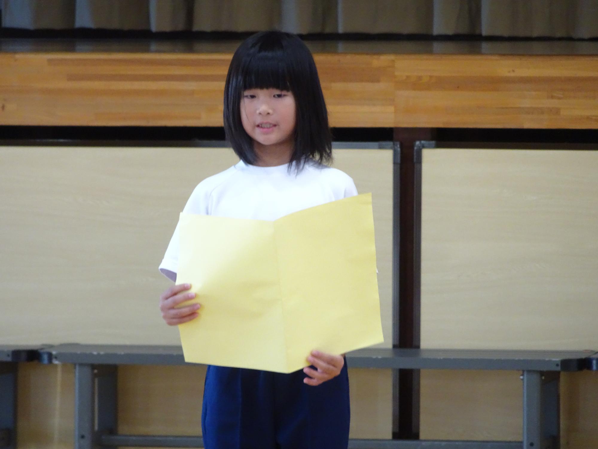 続いて、各クラスの代表がクラスでのこの前期の成長を発表しました。