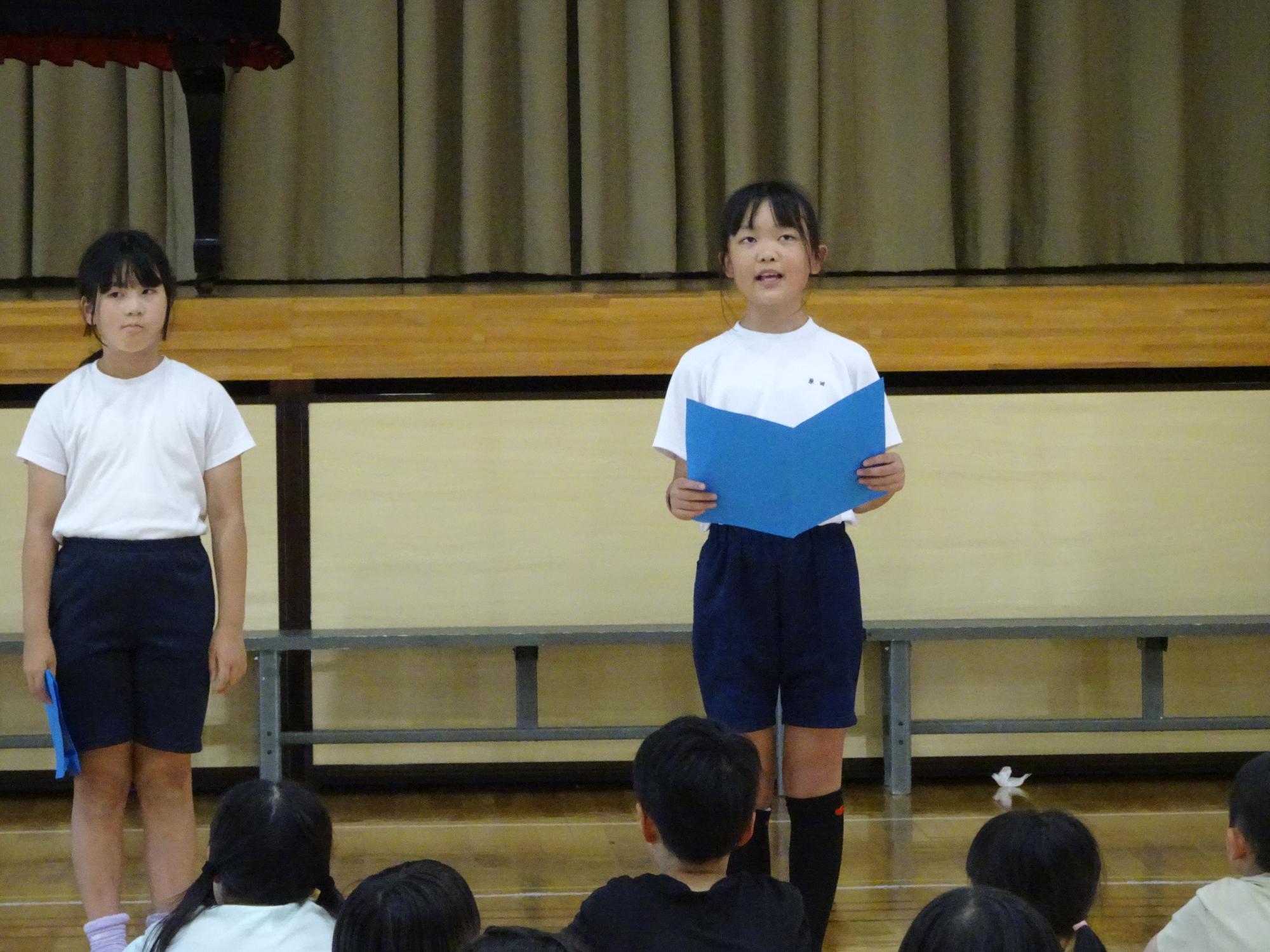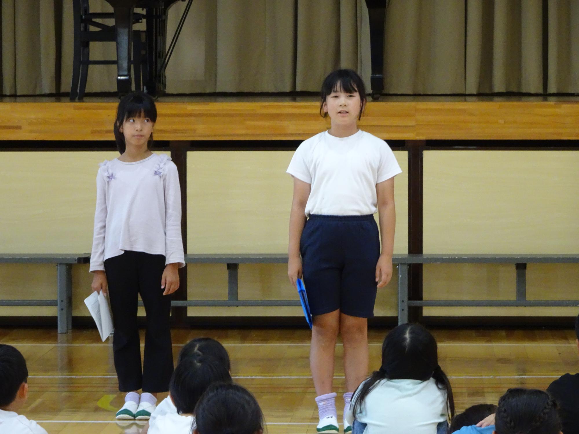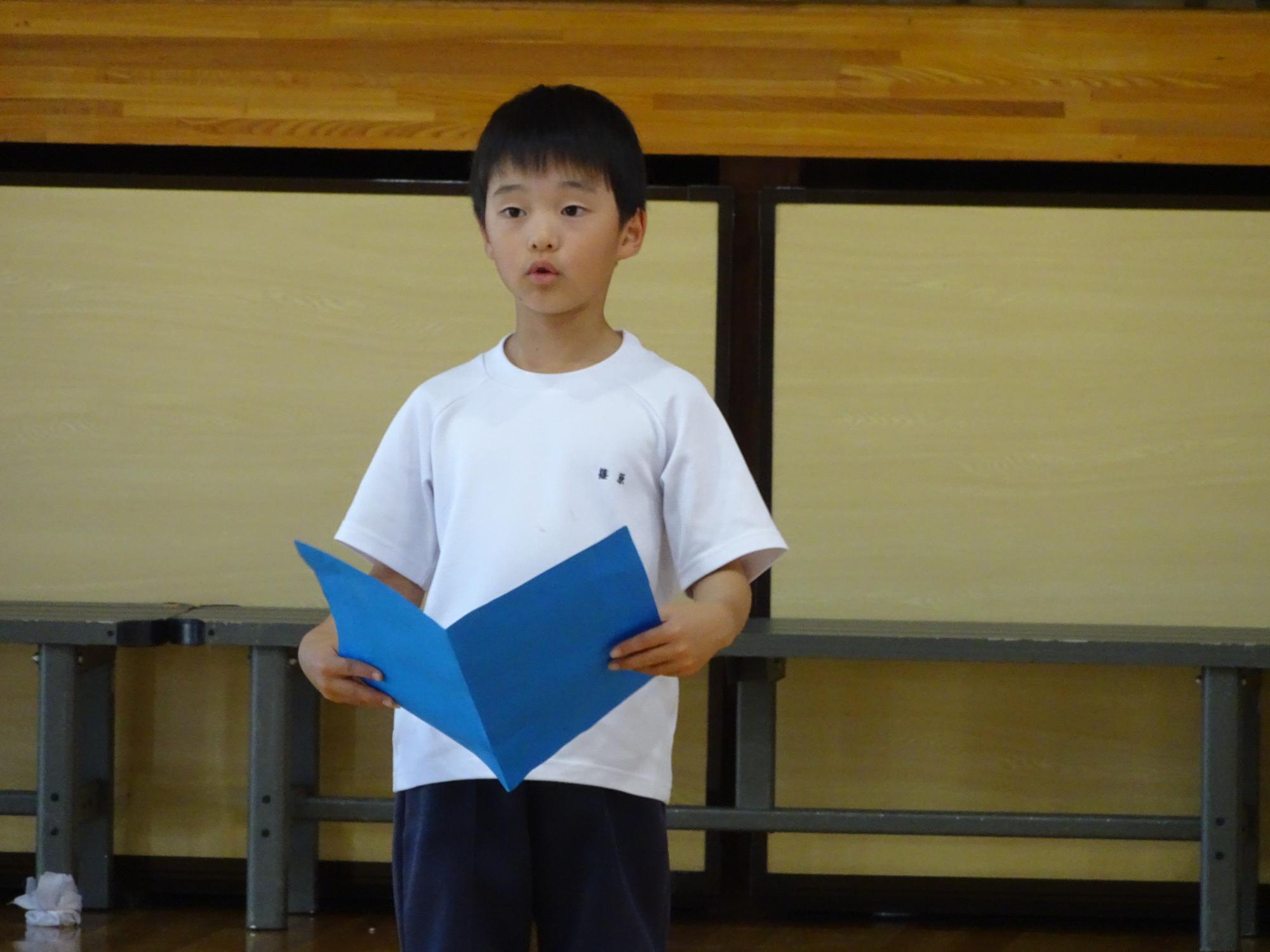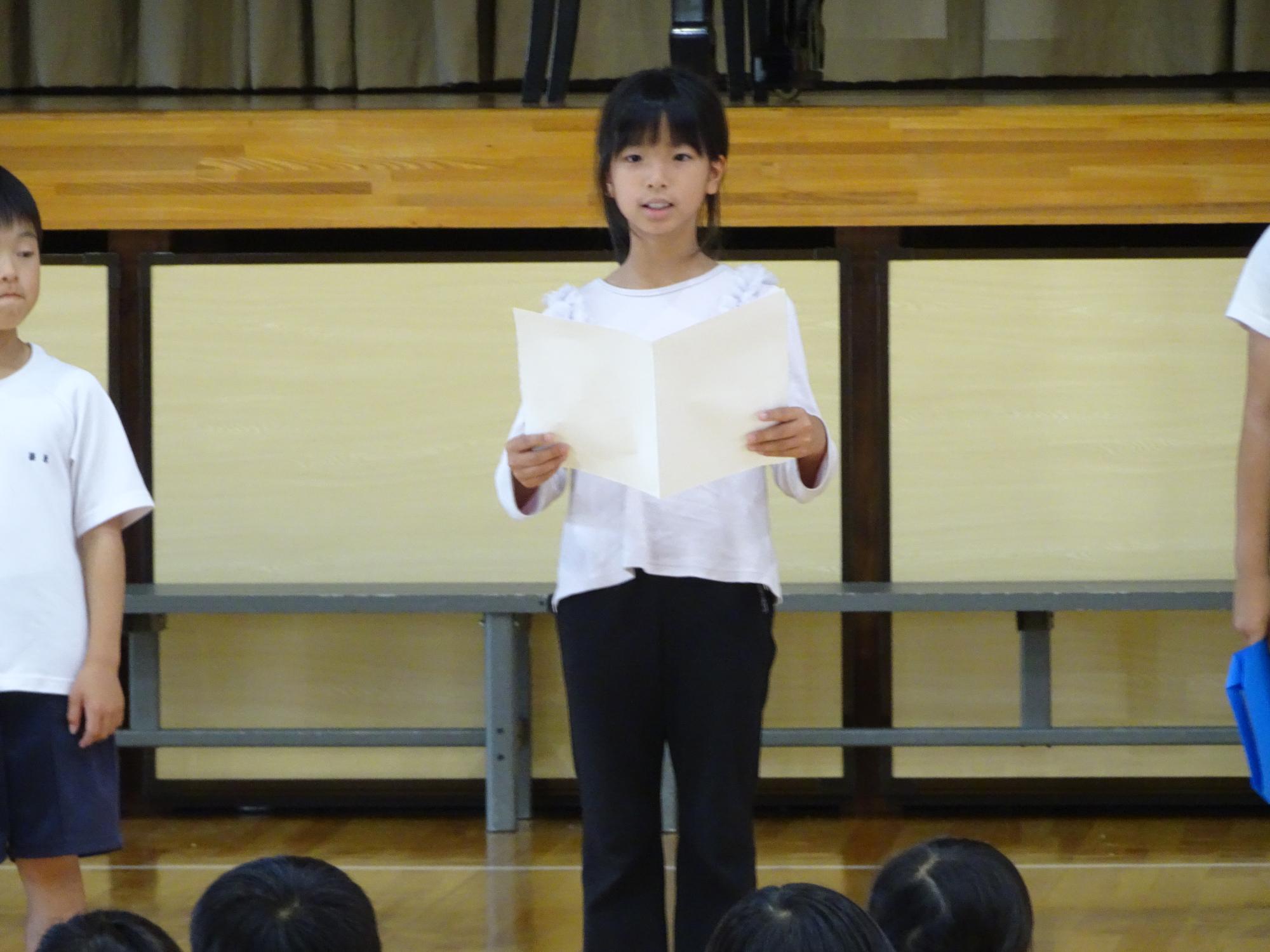 続いて、各クラスの代表がクラスでのこの前期の成長を発表しました。