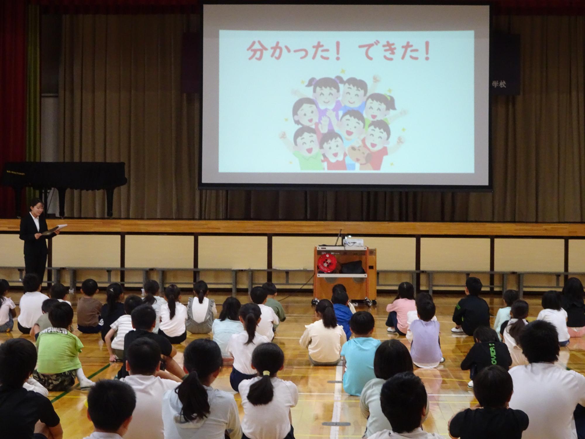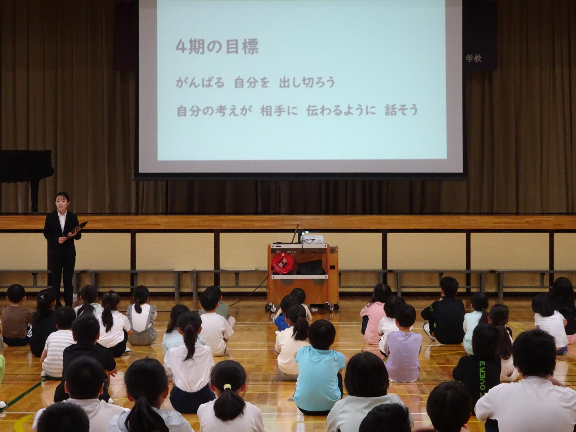 今日から、1年の後半です。新たな気もちでスタートがきれるように始業式と5期の集会を行いました。どの子も、真剣に話に耳を傾け、後期に新たな願いをもって向かいました。