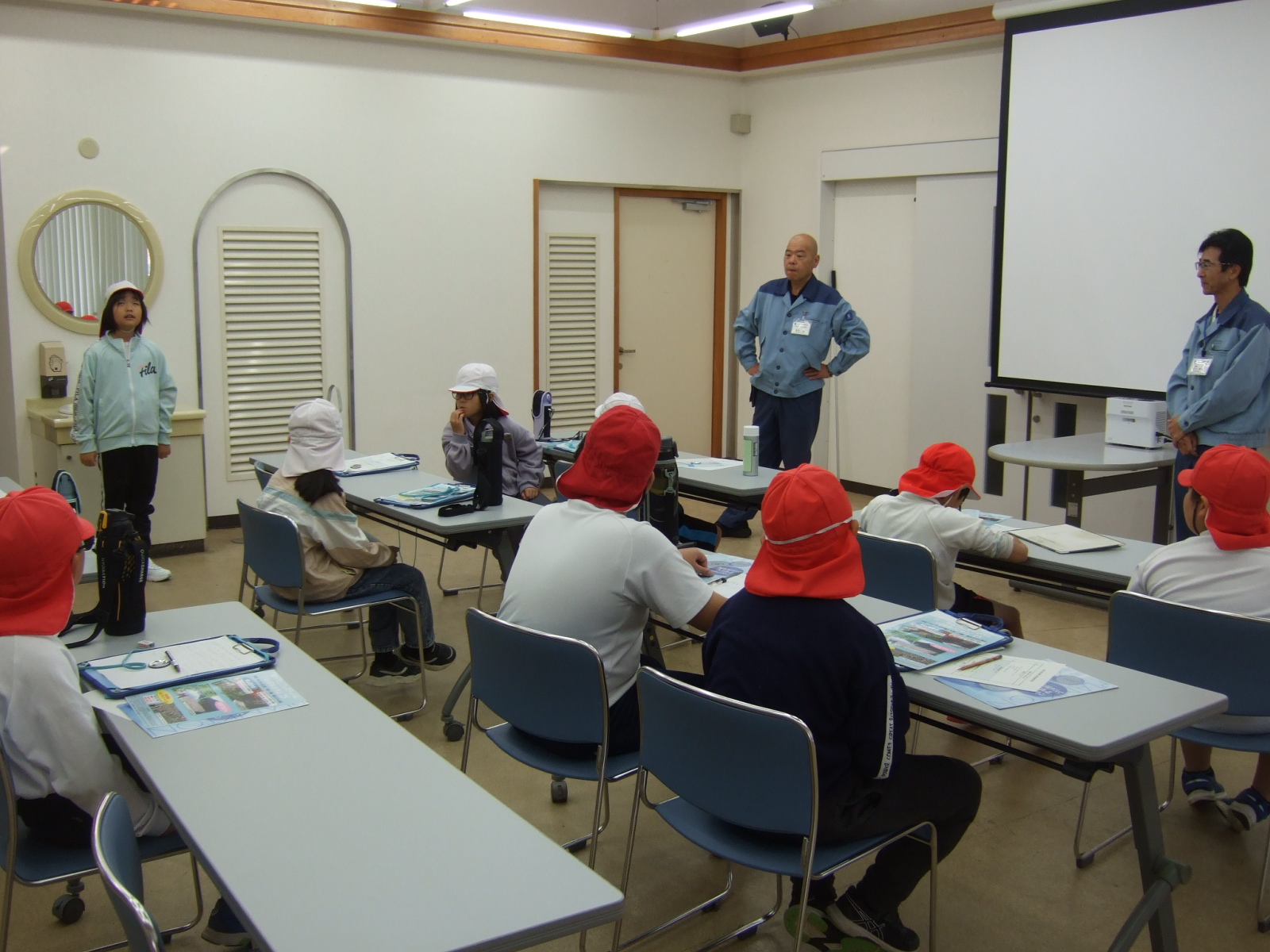 また、さらに興味を持って質問もたくさんしました。「ダムから下の川へ魚はどうしているのですか?」「一番水がたまっている時と比べて、今はどれくらいですか?」「少し少なめにしている理由は何ですか?」「今日はあまり見えなかったのだけれど、ダムには、どれくらいの種類の魚がいますか?」「ダムの一番深いところは何mくらいですか?」「たまっている水はどういう時に放水しますか?」「プランクトンは何でできていますか?」…とたくさんの質問をしました。