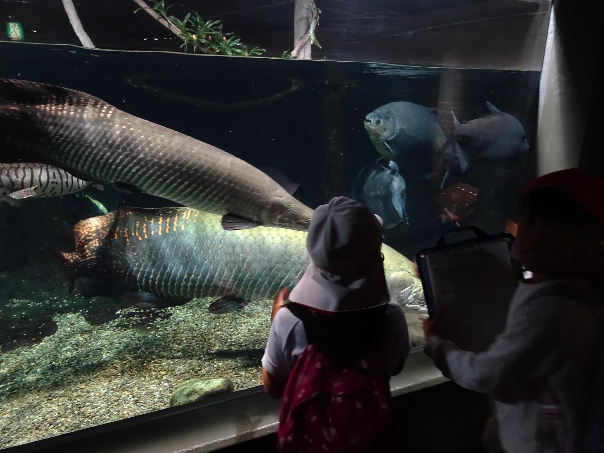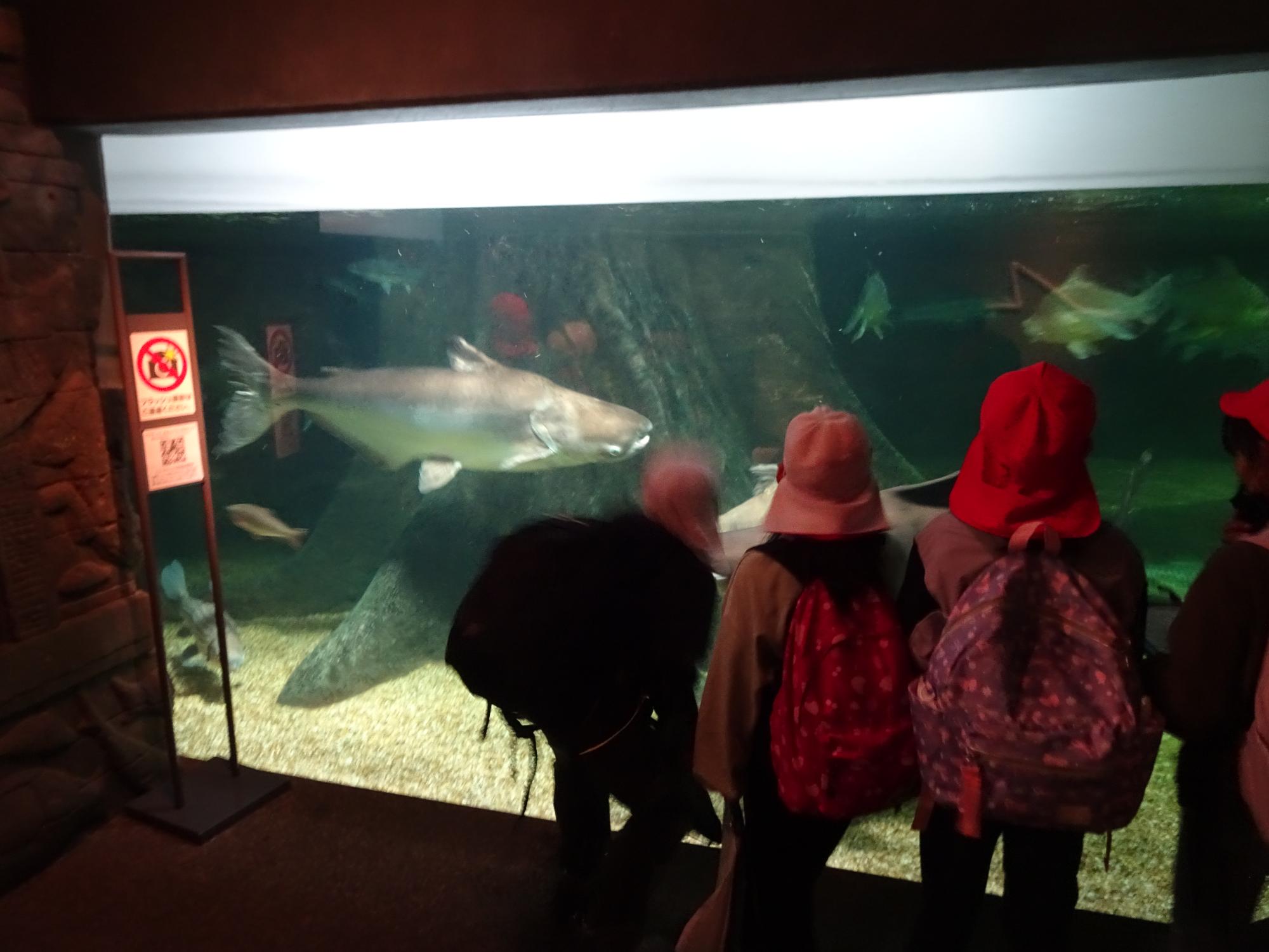 かえってきた3年生に感想を聞くと、「すごく大きい魚、僕より大きい、もっと、校長先生より大きい魚がいてびっくりした。」とのことでした。