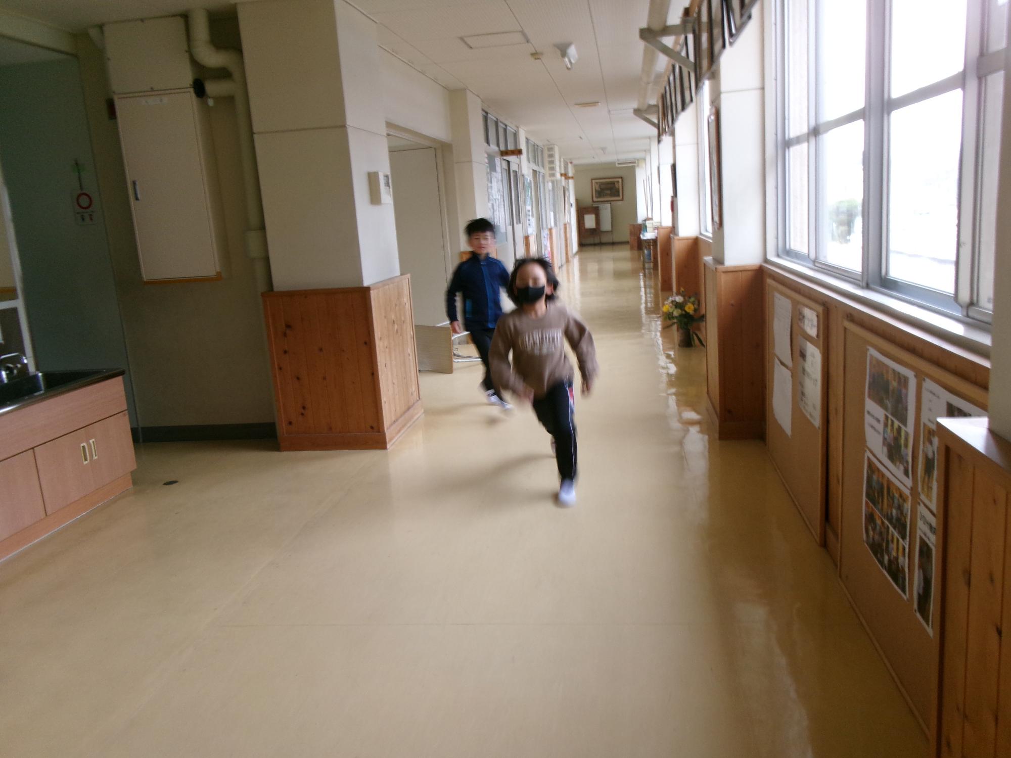 先生が誘導してくれる避難とは一味も二味も違いますが、どの子も自分で考えて安全に避難してきました。