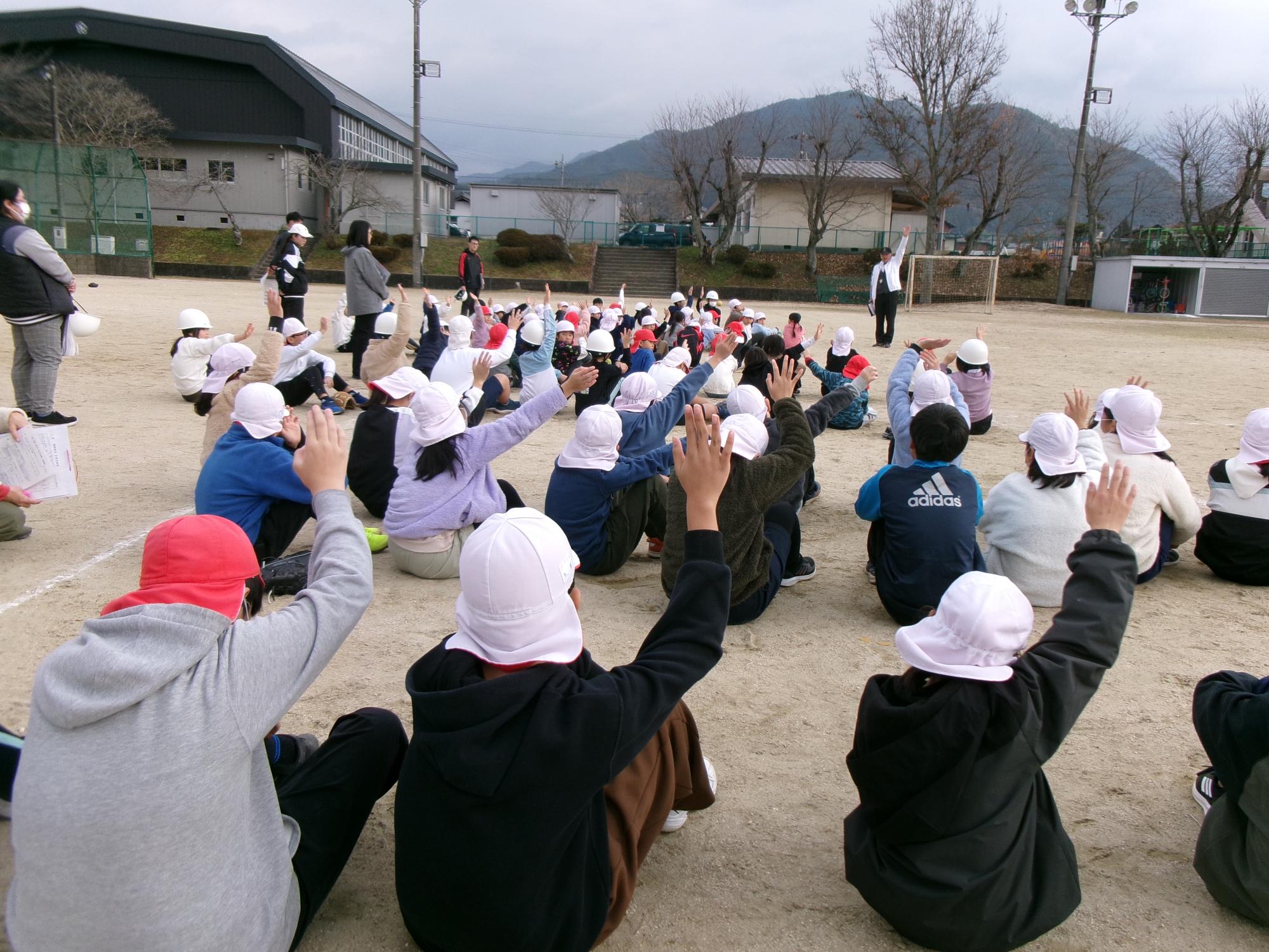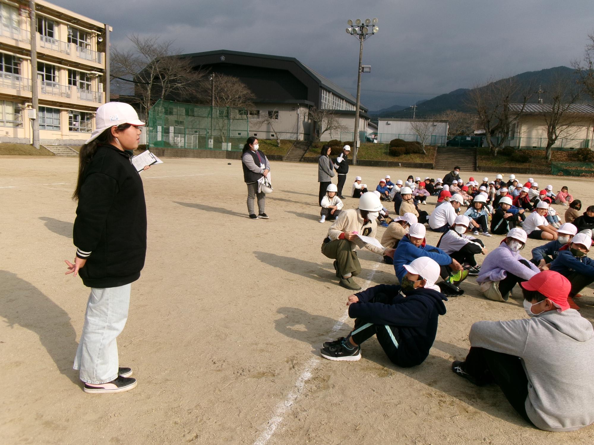 運動場でドッチボールをやっていた子たちも、6年生が声をかけてくれて、素早く集まってしゃがみました。(6年生のリーダーシップは、本当に素敵でした。)