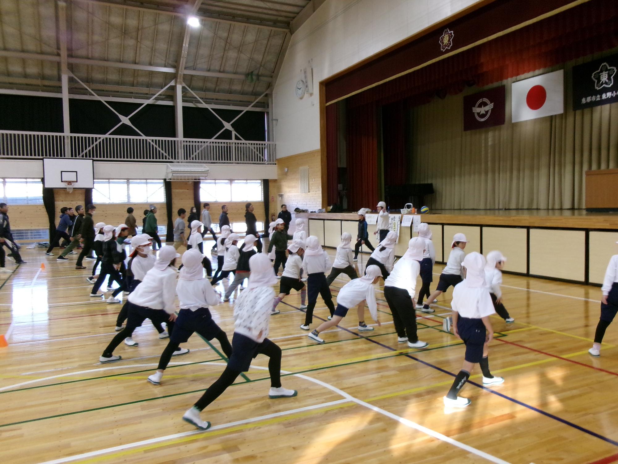 運動委員長と副委員長の号令で、準備運動も念入りに・・・