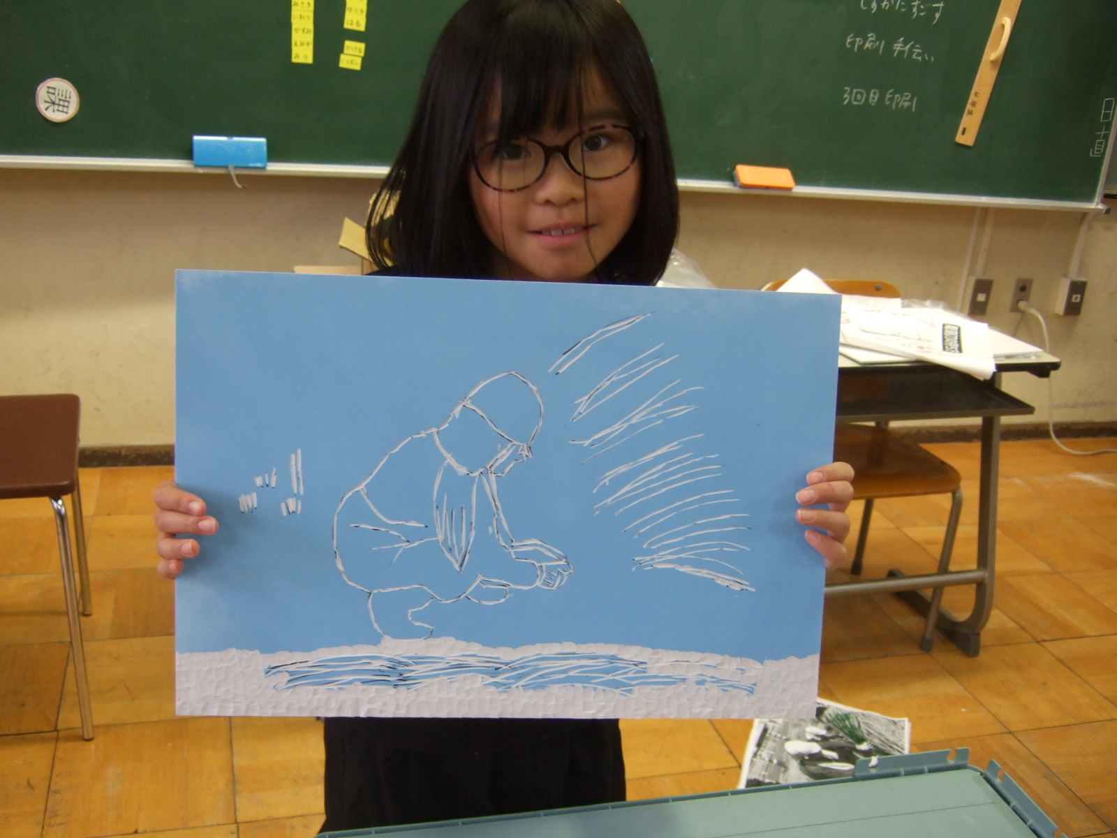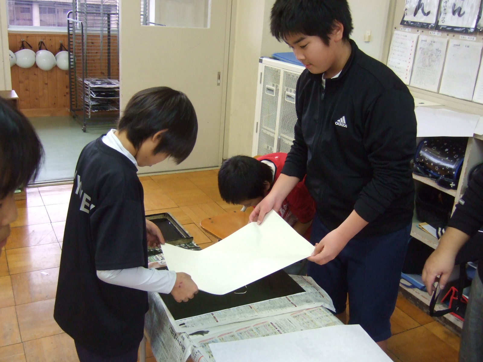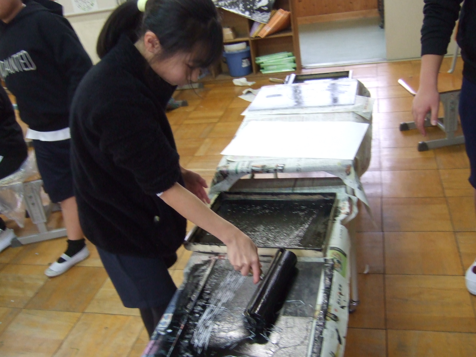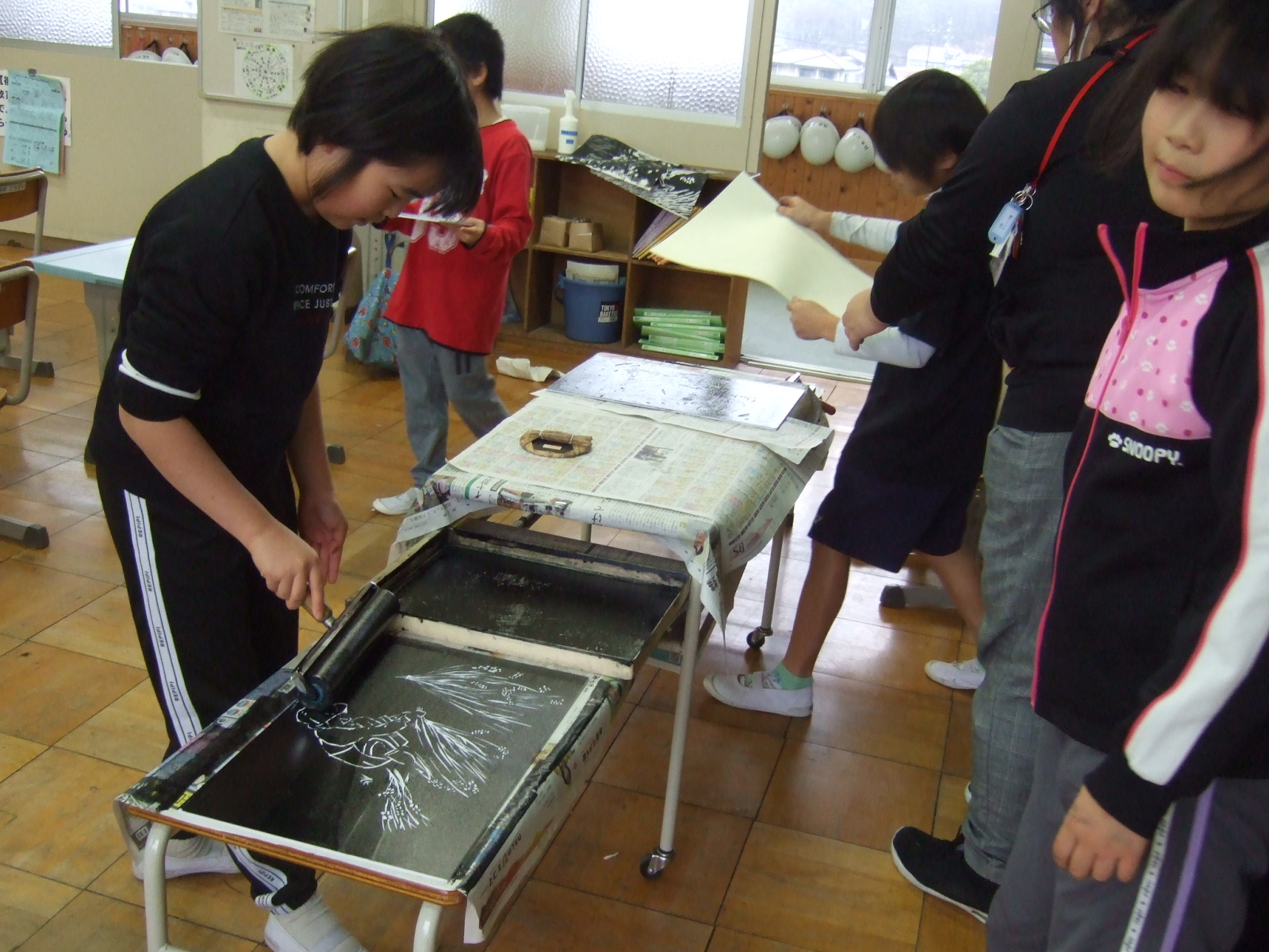 昨日、4年生は、5・6時間目に図工で3回目の版画を学習しました。少しだけ彫ってから印刷をしました。早く終わった人は、まだできていない人のお手伝いをしました・◯◯◯さんと◯◯◯さんが、印刷のためのインクをねったり、版の上に紙を置くのを手伝ってくれました。最初はあまり上手に彫れなかったけど、最後に上手に彫れるようになったので良かったです。