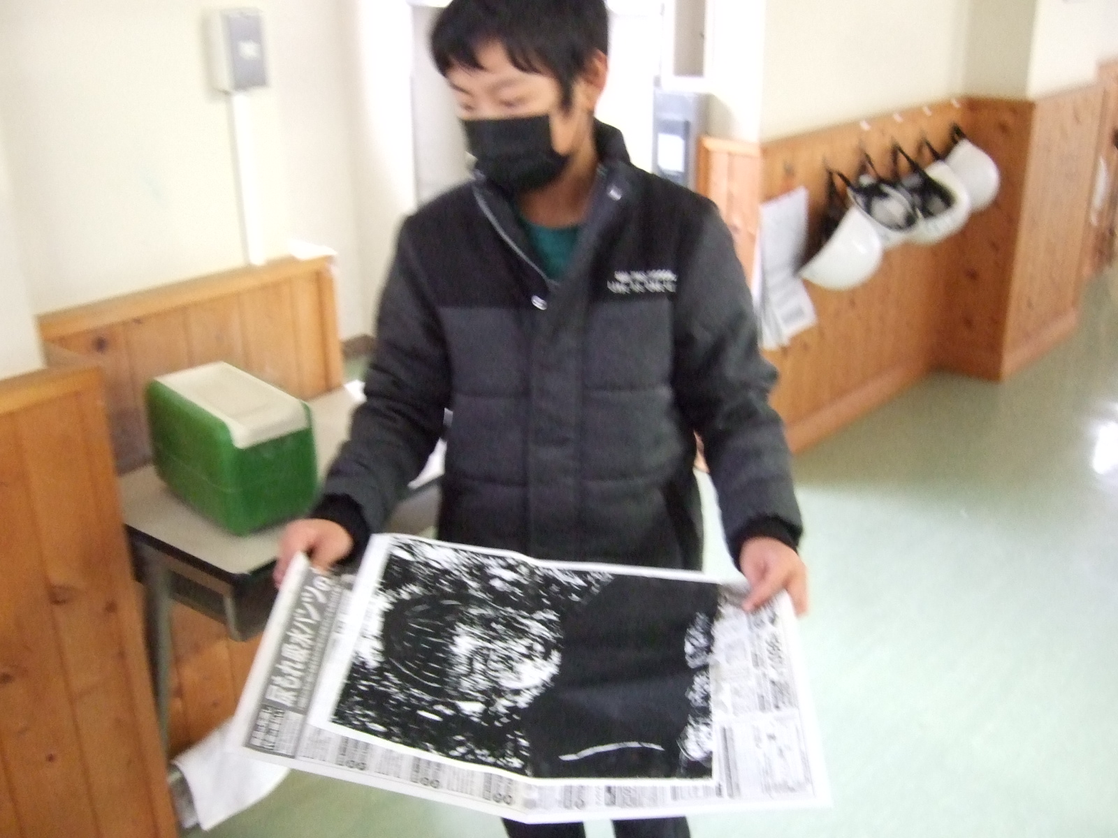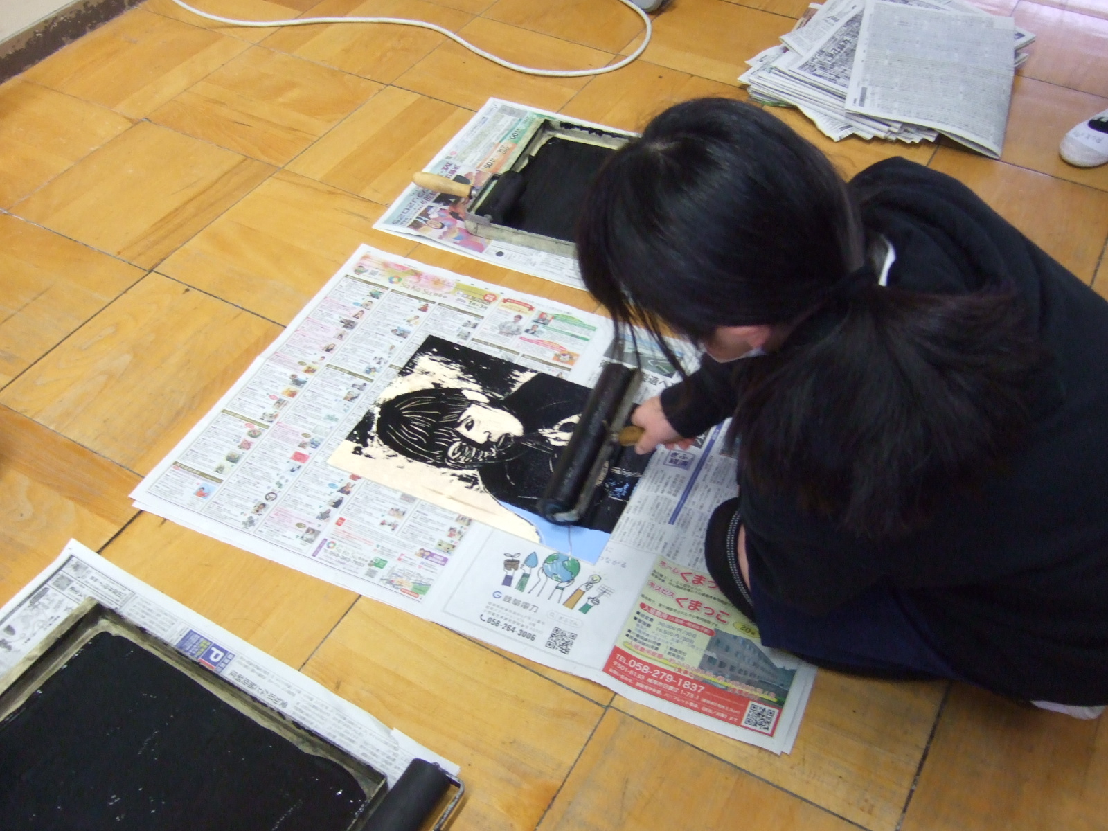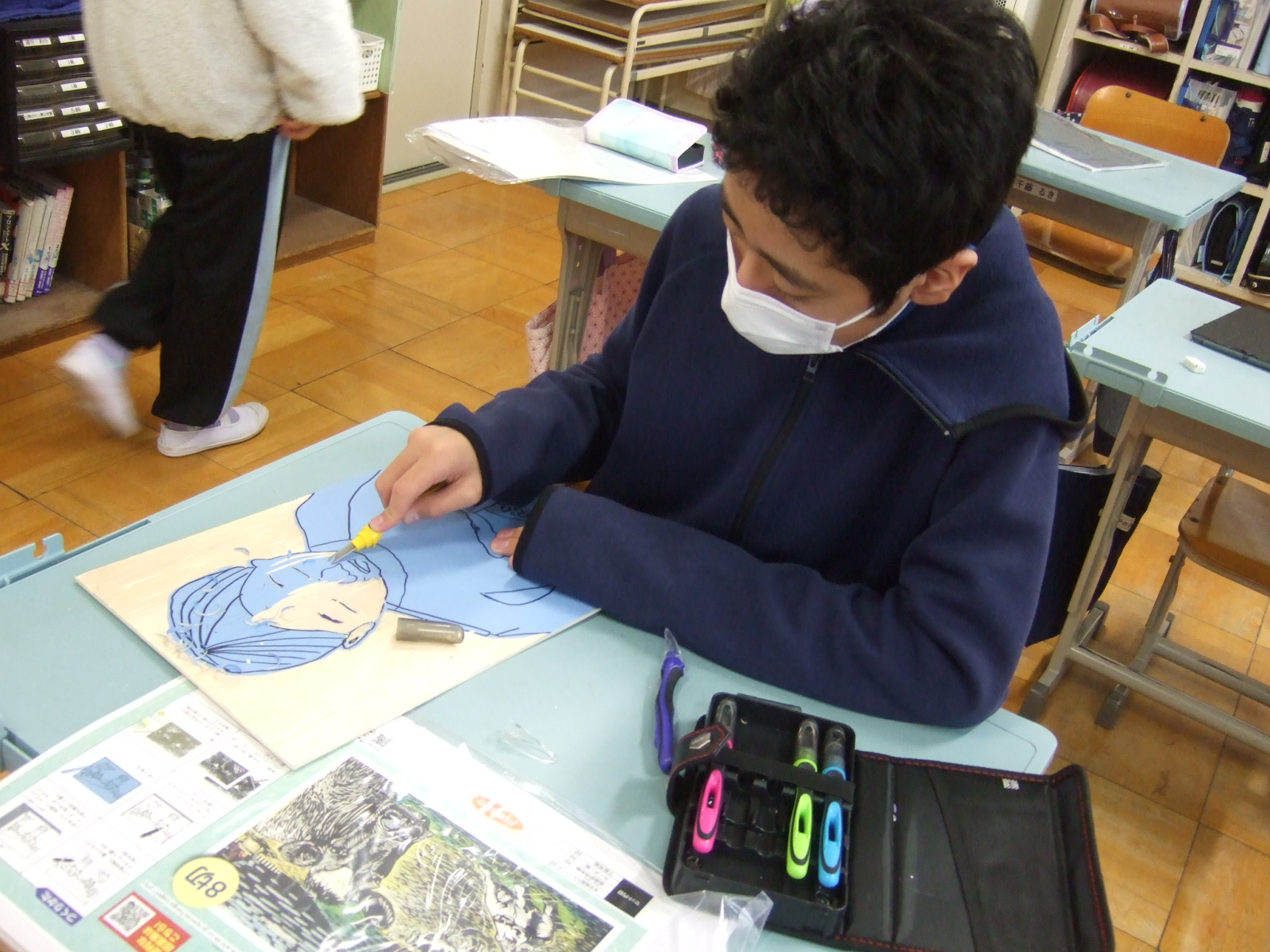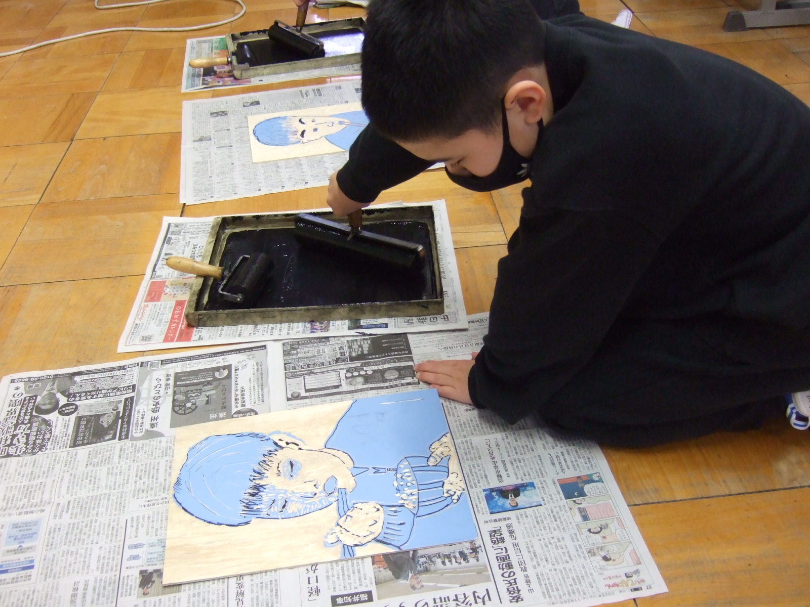 12月24日恵那の給食美味しいなを版画に(5年図工)