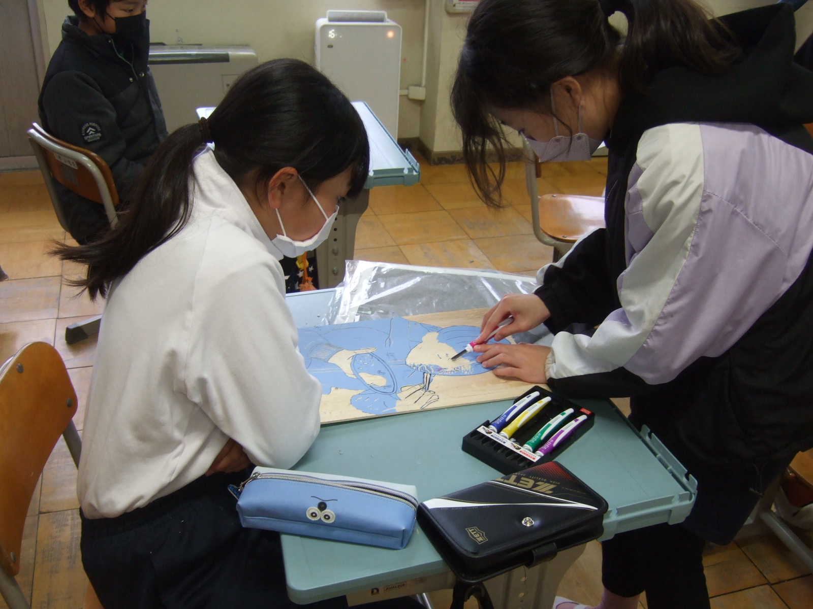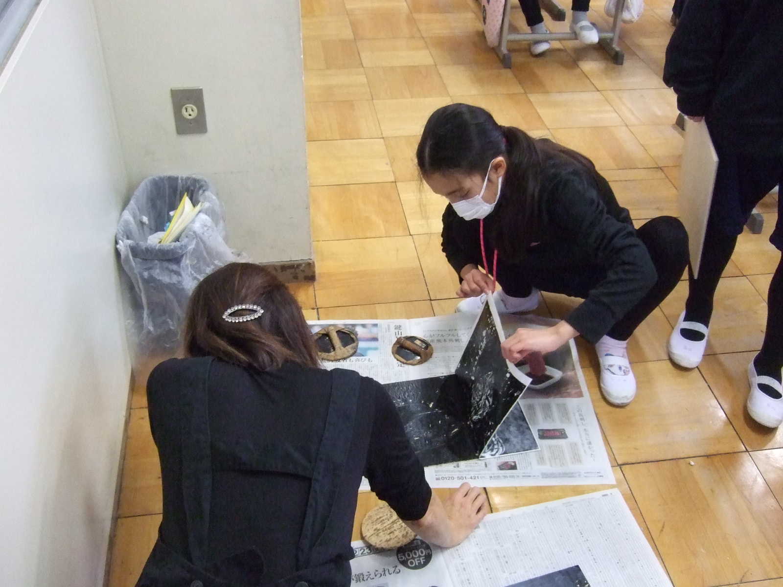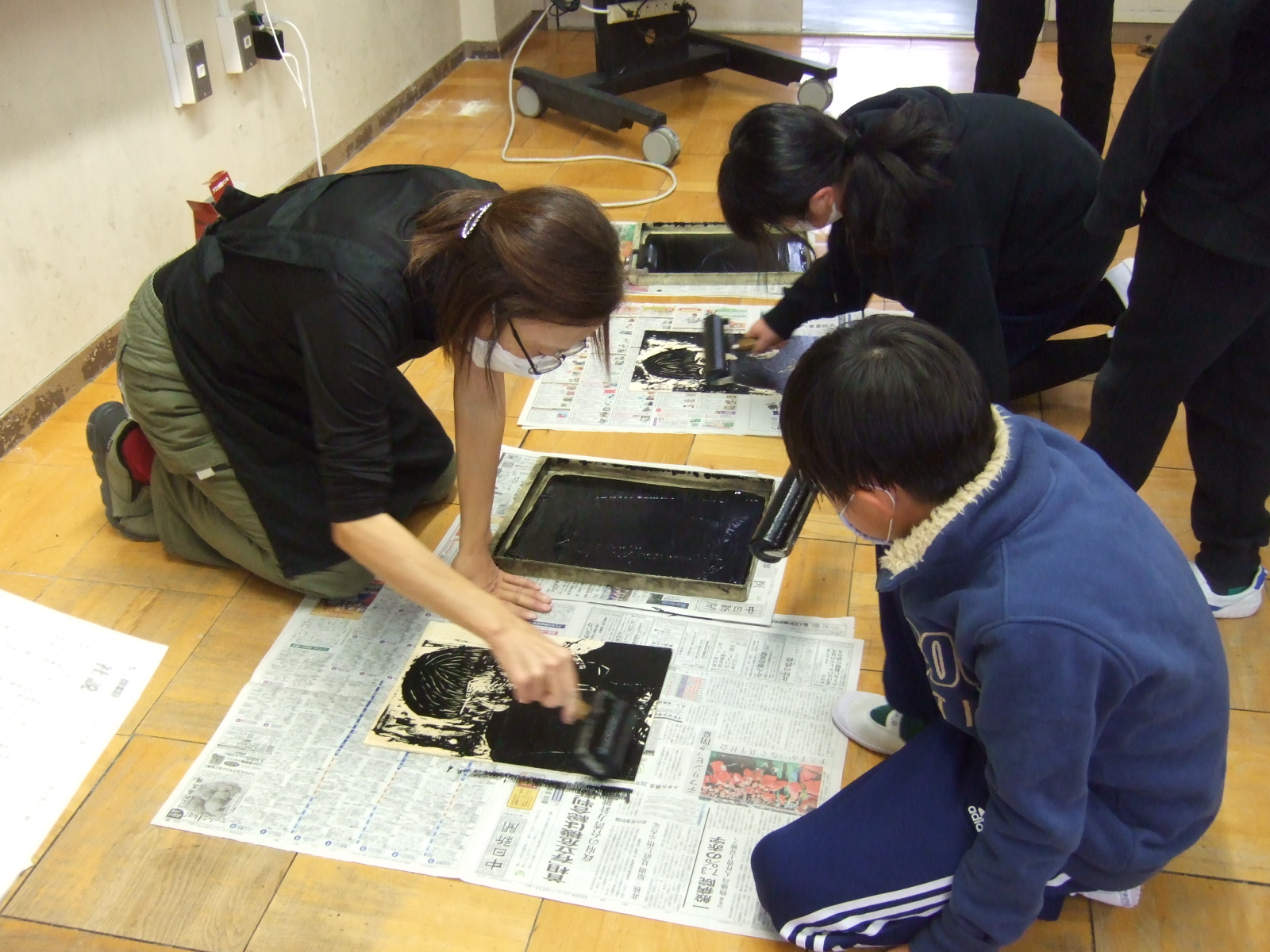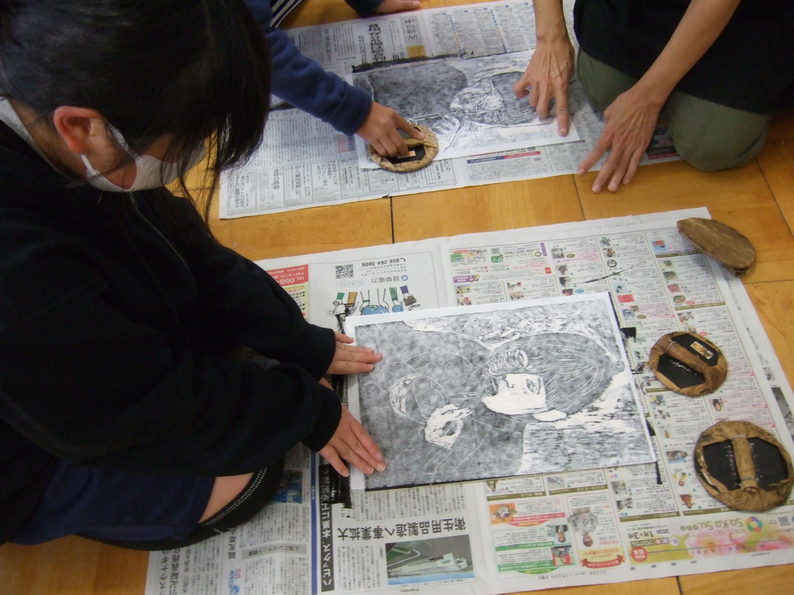12月24日恵那の給食美味しいなを版画に(5年図工)