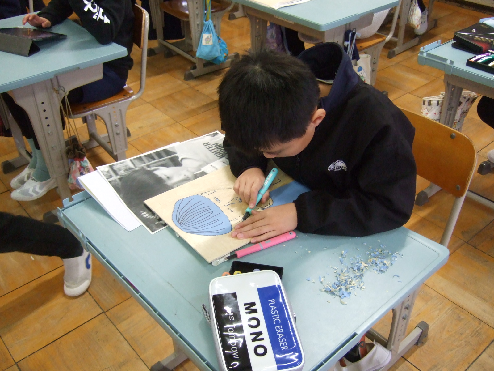 すごい、力作ぞろいの5年生、これまた、中山道美術館の版画コンクールが楽しみです。