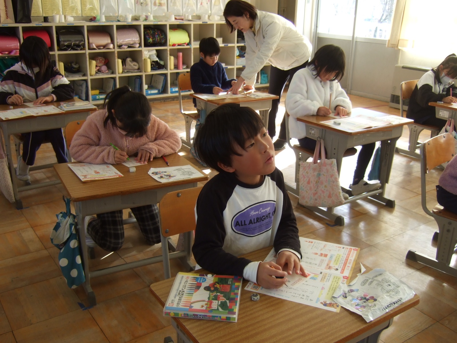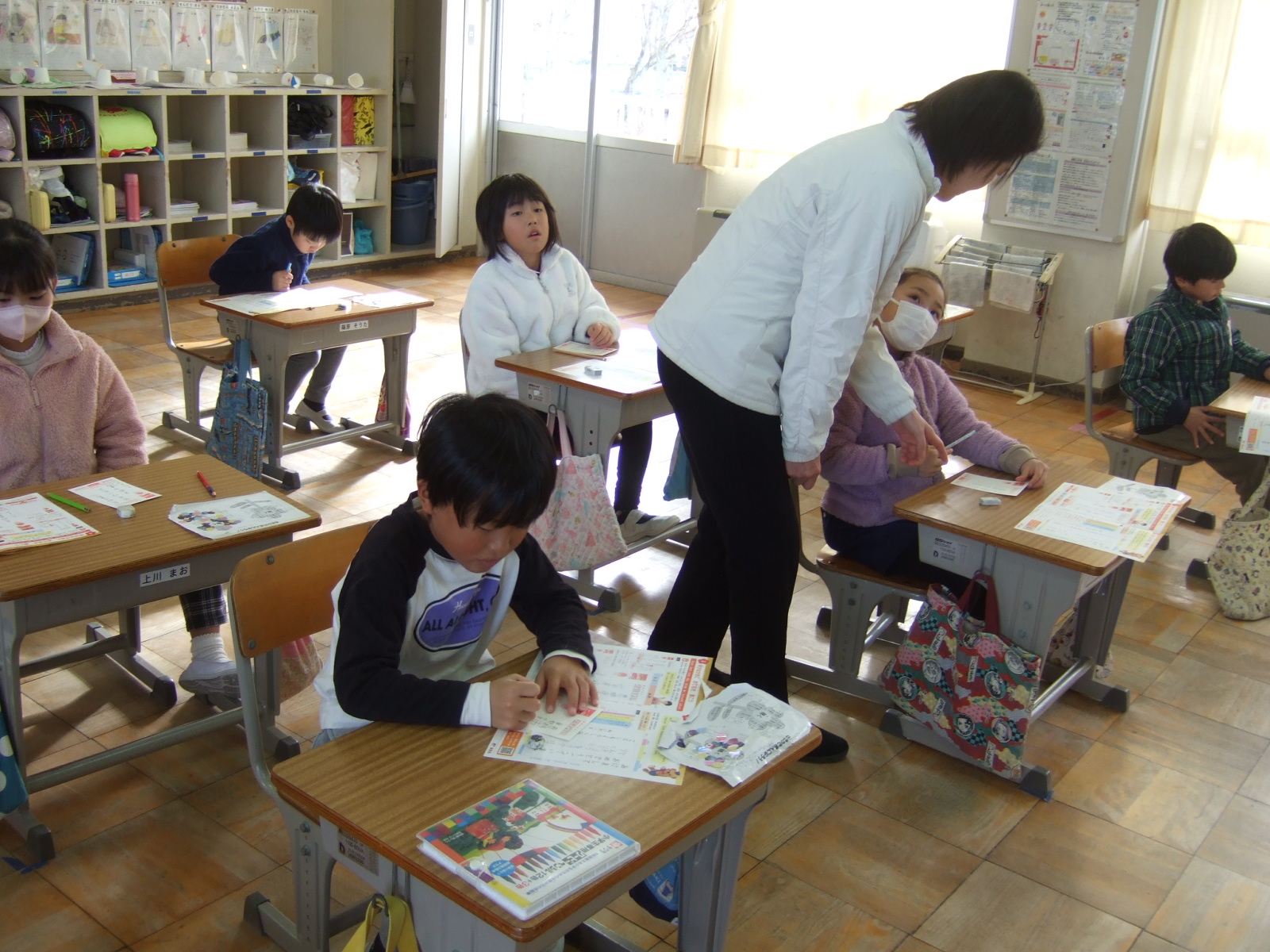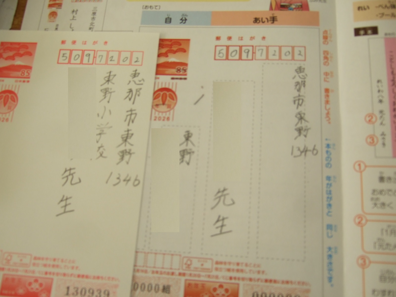 住所の「恵那」は、まだ、漢字を習っていないけど一生懸命に先生の字を見て書きました。