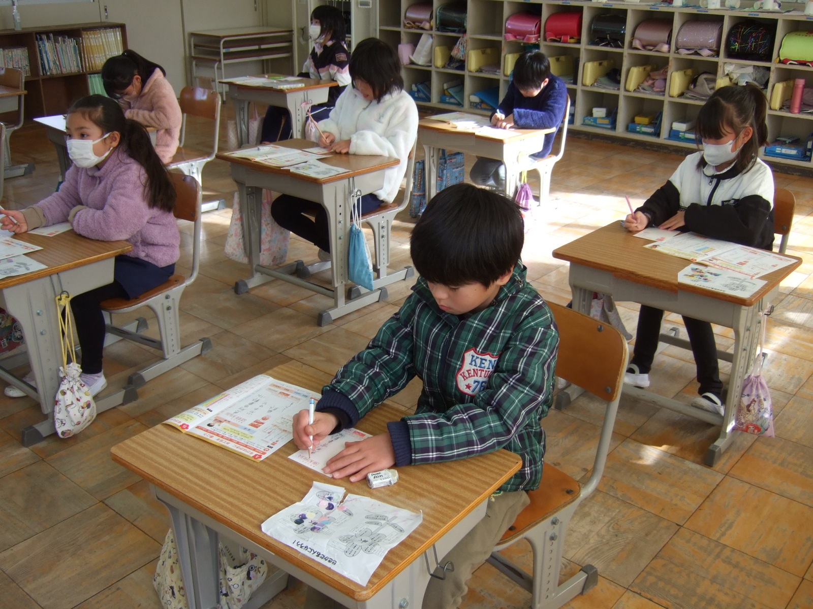 練習の後は、実際の年賀状に、もらった人の気持ちを考えて丁寧に心を込めて書きました。