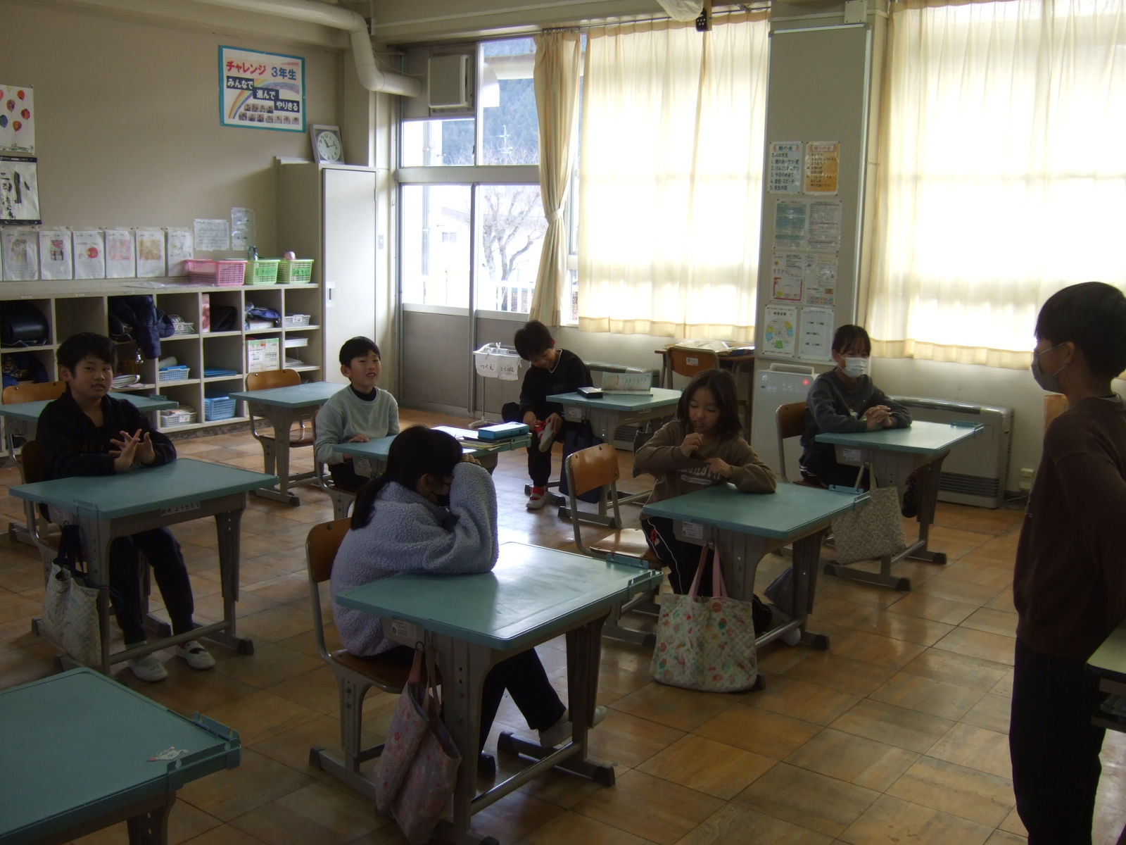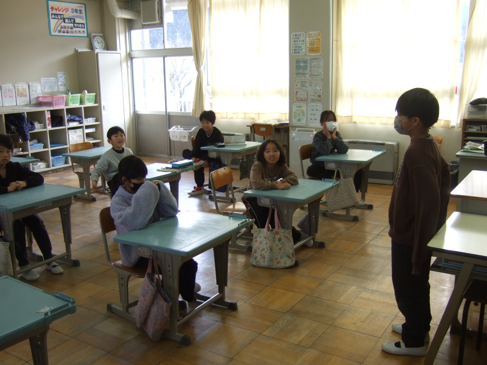 3年生は全員揃って、早速、冬休み中の交流会をしました。冬休み中に頑張ったことや、楽しかったことなど交流しました。