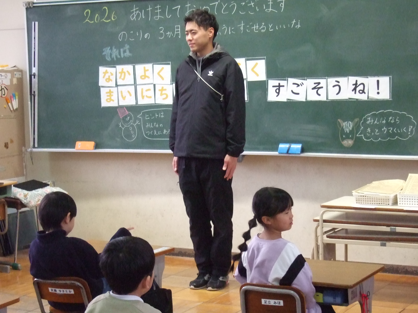 2026年のスタートに、1年生は早速みんなで考えました。あと残された3カ月で2年生になるんだけど、どんなことを頑張るといいのかな?
