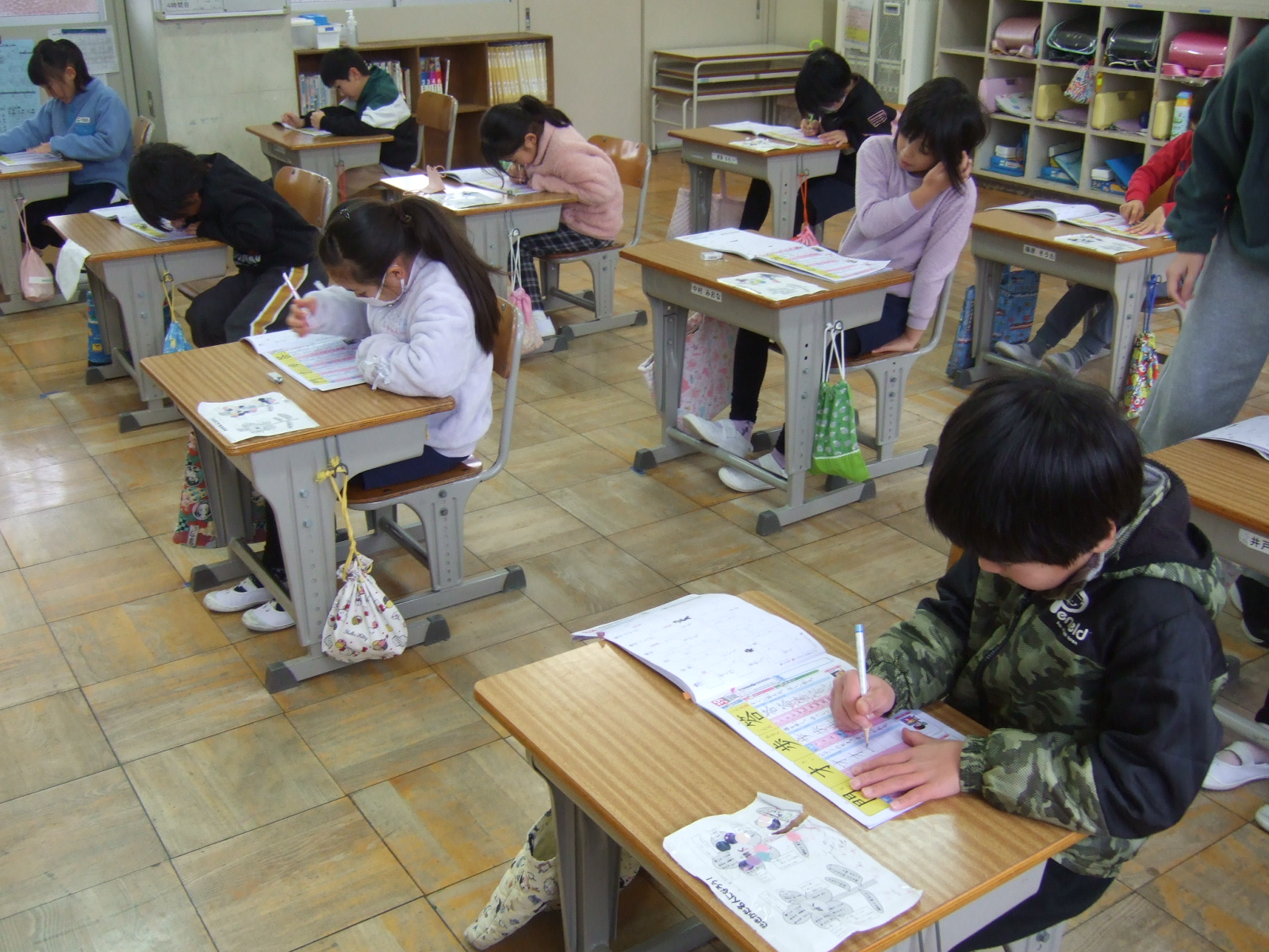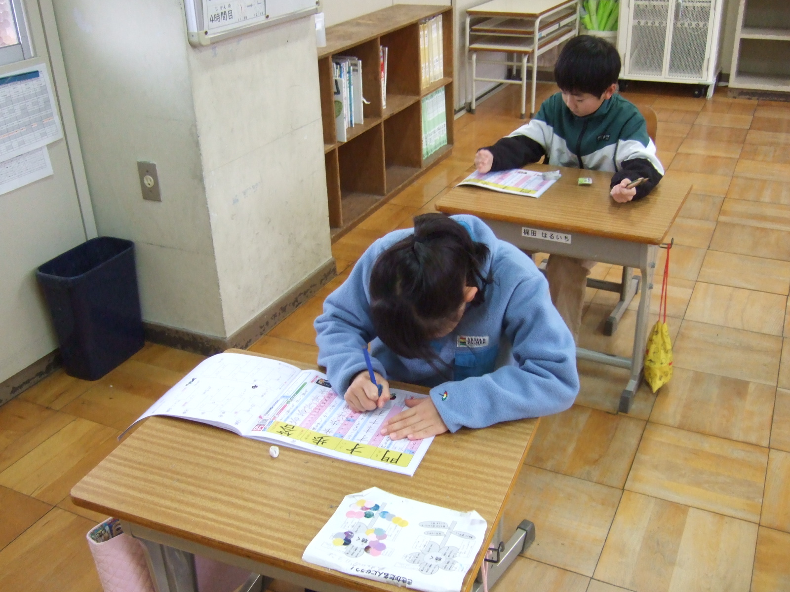 2年生は、学級目標の「いちばんぼし」のように輝く姿がいっぱいです。今日は、漢字スキル(ドリル)を使って、新出漢字の練習です。