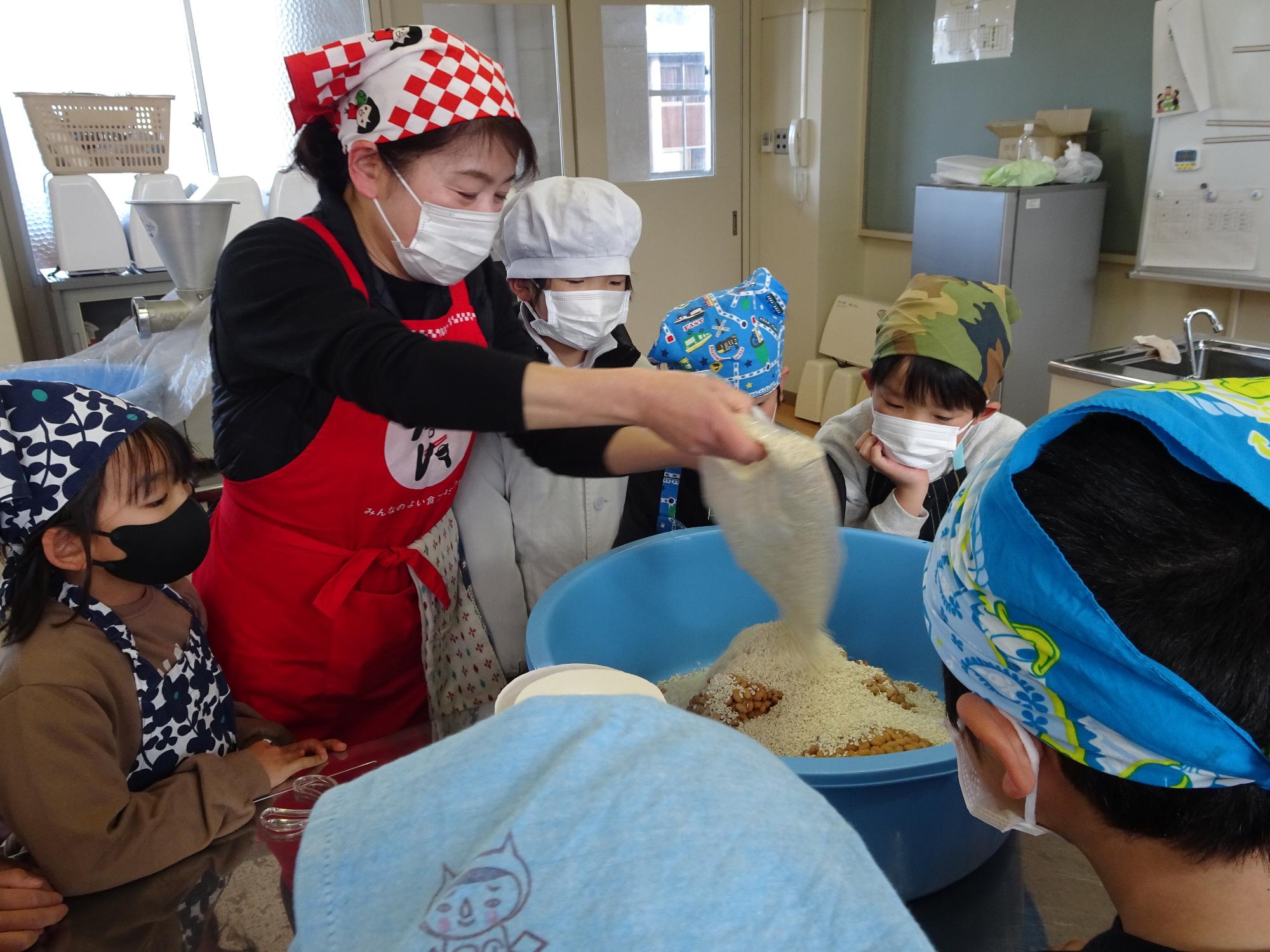 ちなみに、出来上がったお味噌は、来年の4年生で勉強する米づくりのお米と共に、活用して収穫祭で食べる予定です。