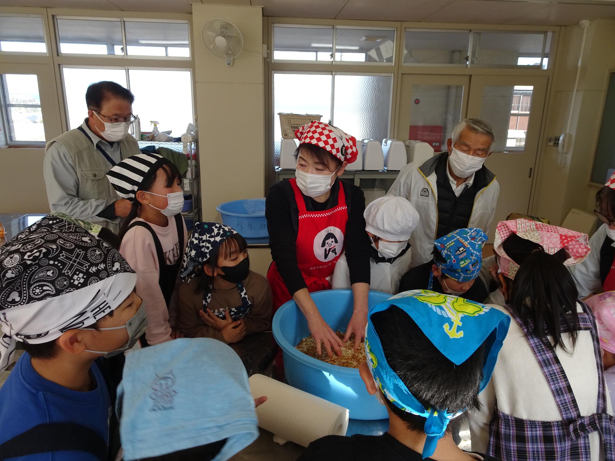 1月14日味噌づくり・ゲンコツアメ作り(3年総合)その1