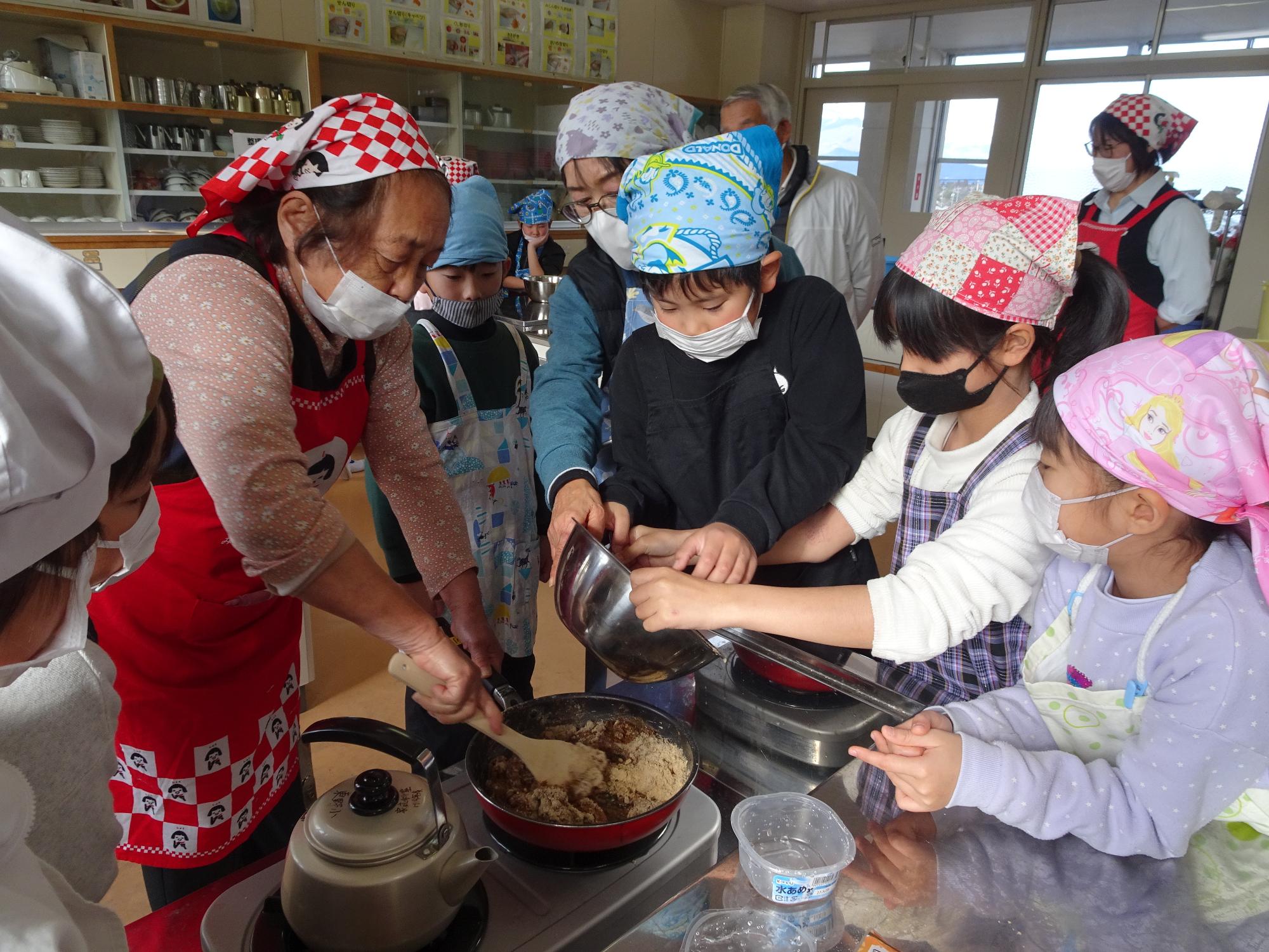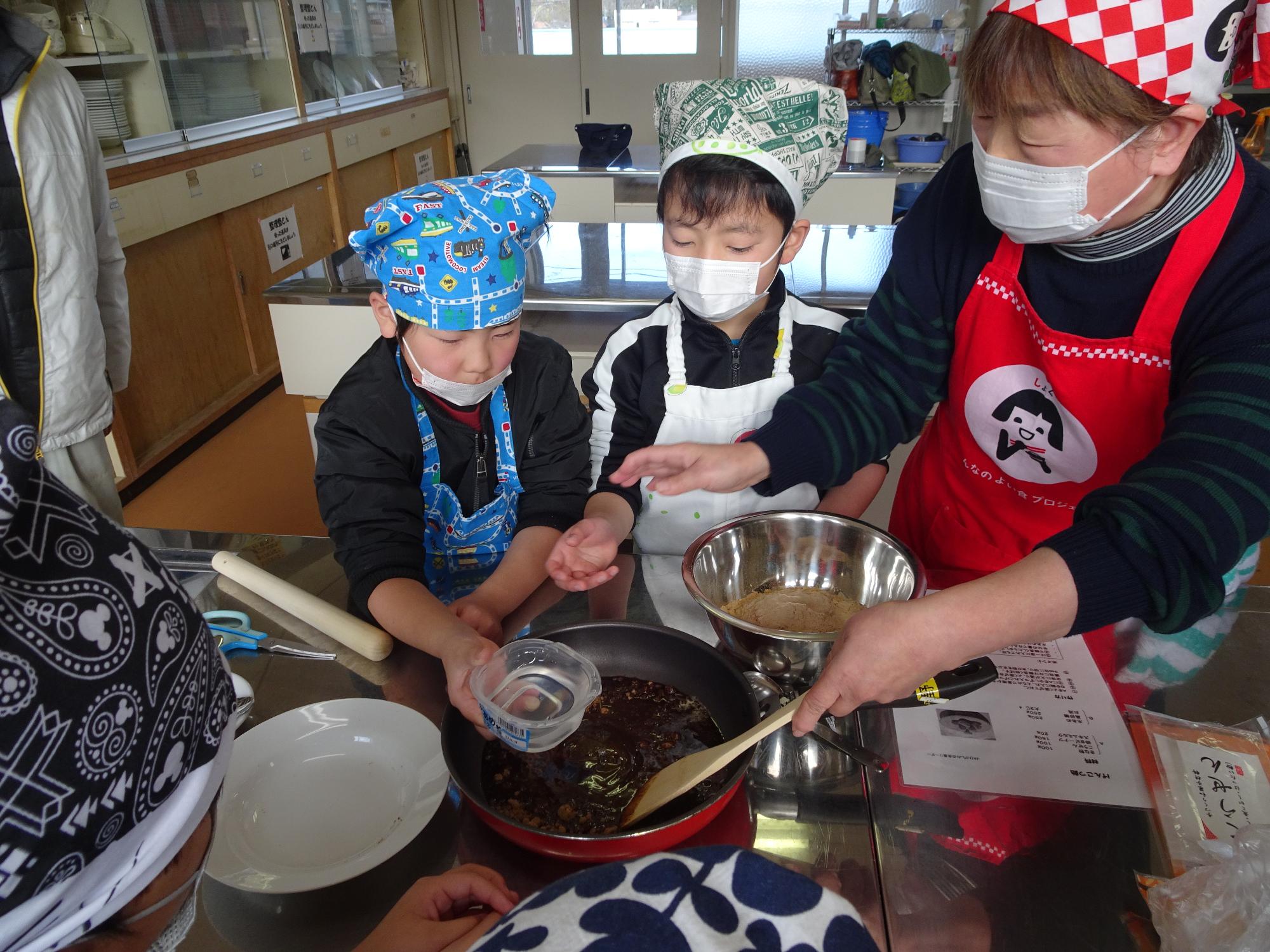 1月14日味噌づくり・ゲンコツアメ作り(3年総合)その2