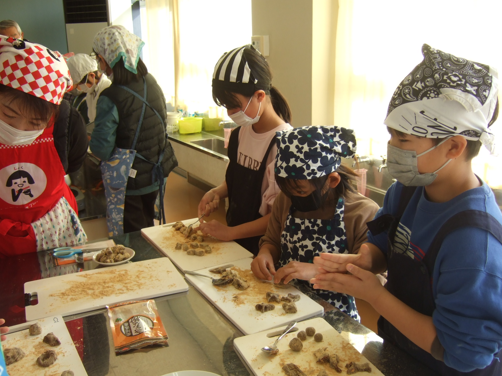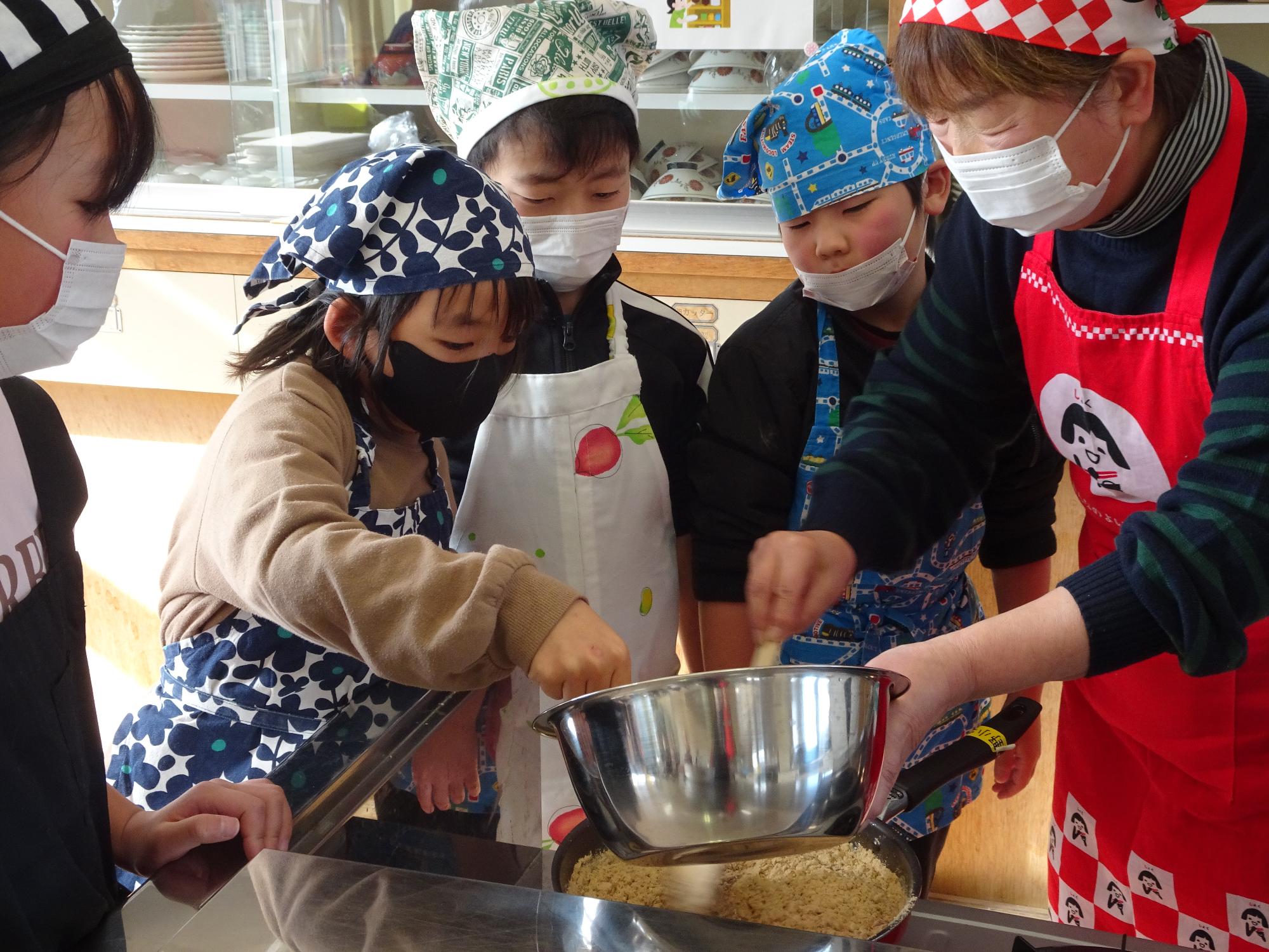 大豆を炒って、粉にひけば・・・きなこもできます。そのきなこを使って、げんこつ飴作りがスタートです。