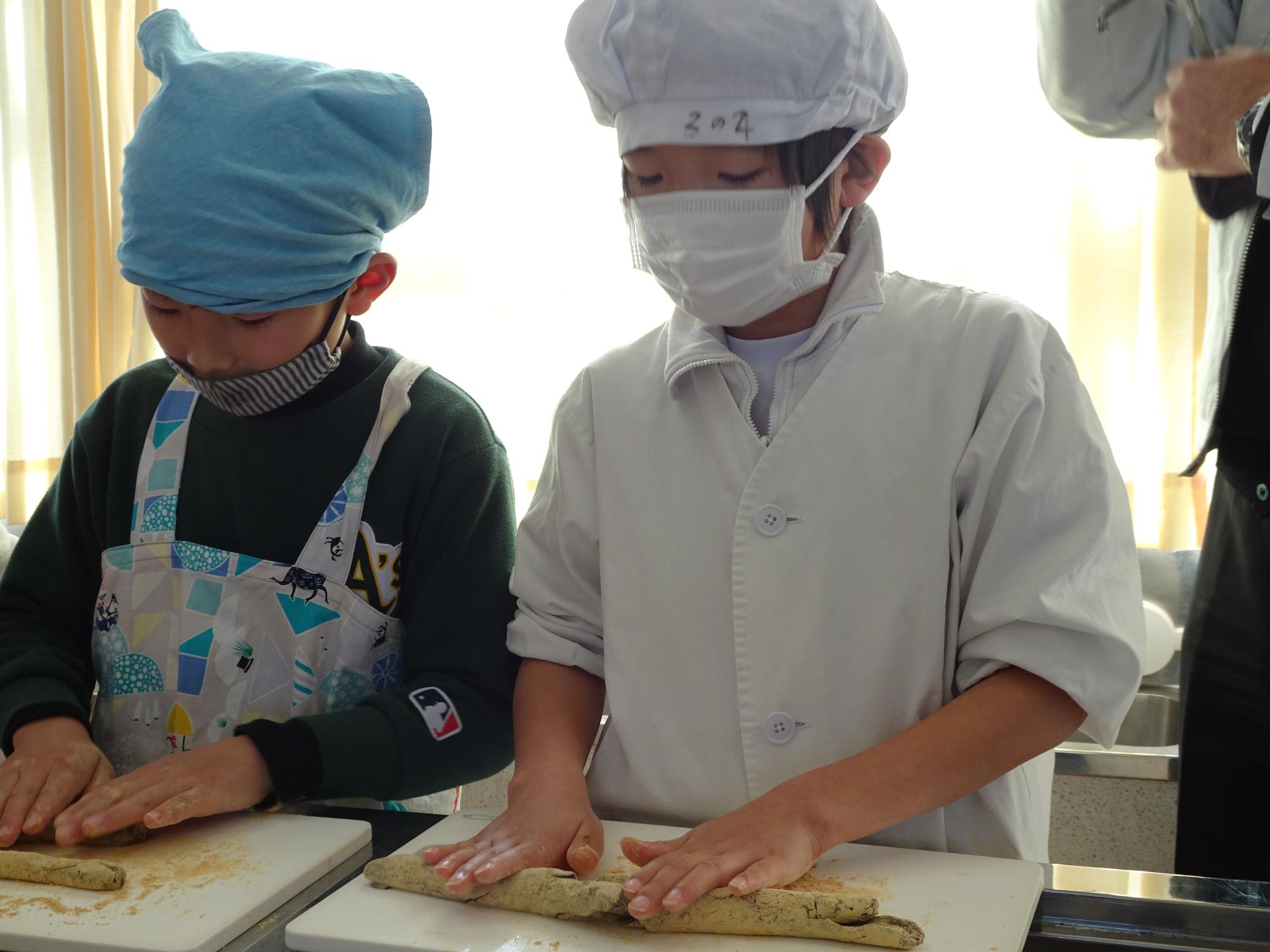 できた、アメを粘土のように伸ばして伸ばして・・・棒状にして