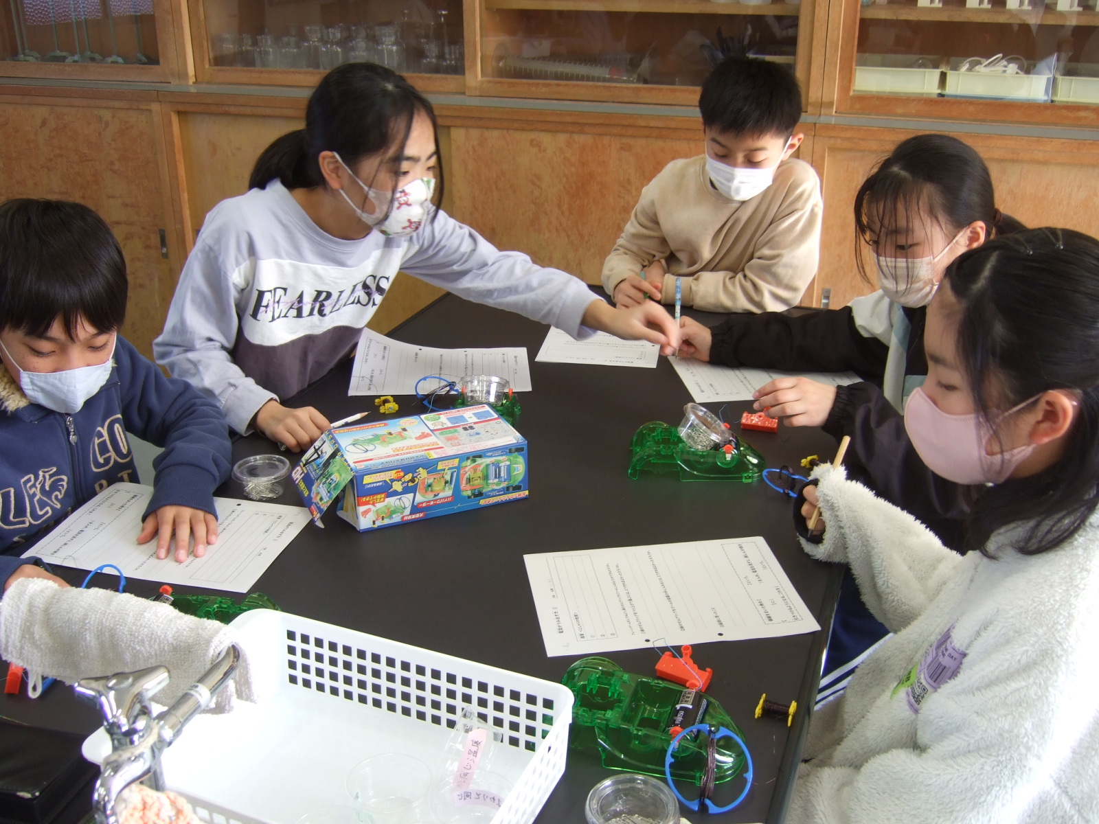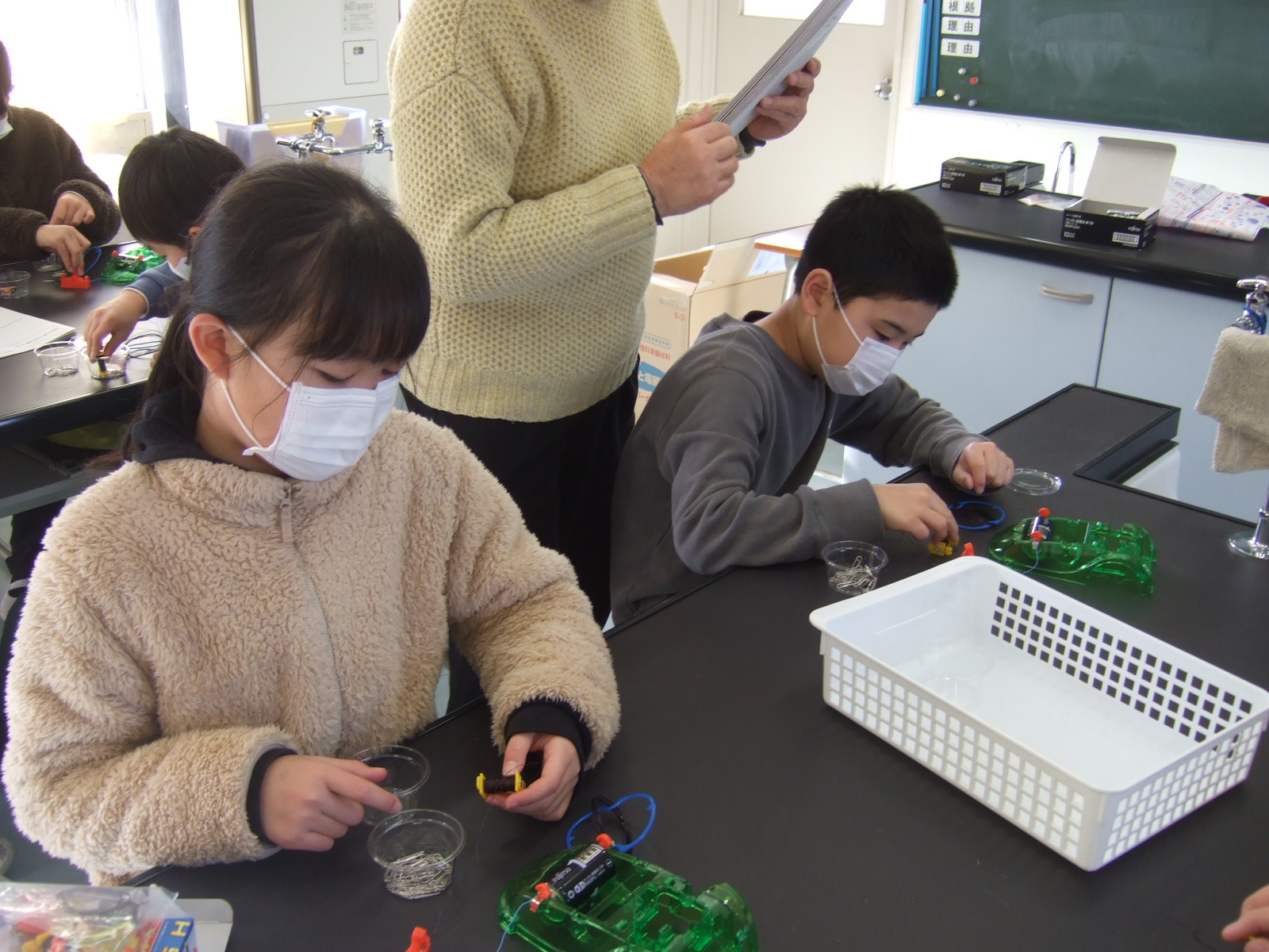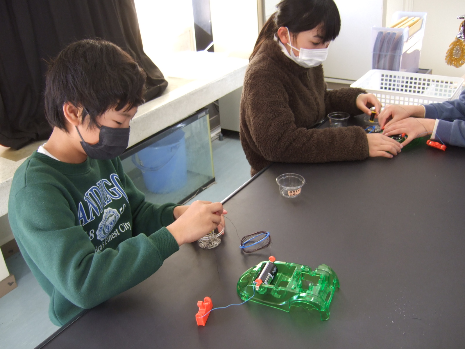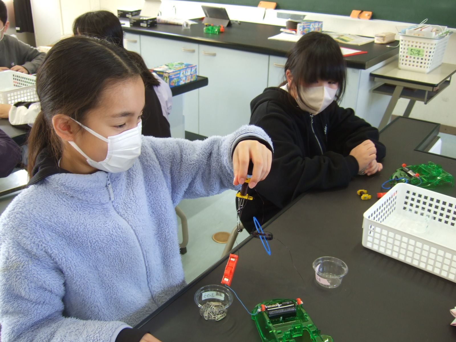 グループで、電流のはたらきによって電磁石がクリップをひっつける体験をしました。