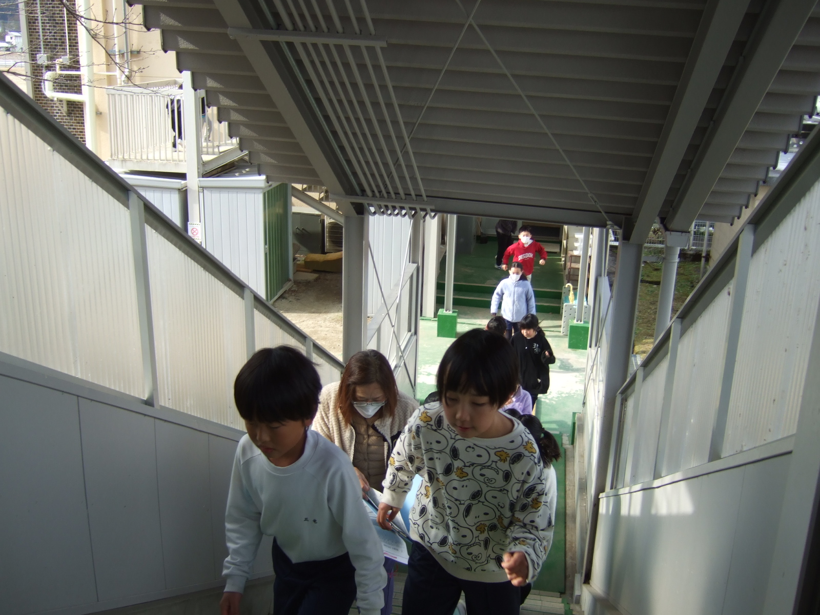 担当の先生から、今日の避難の様子を褒めてもらいました。