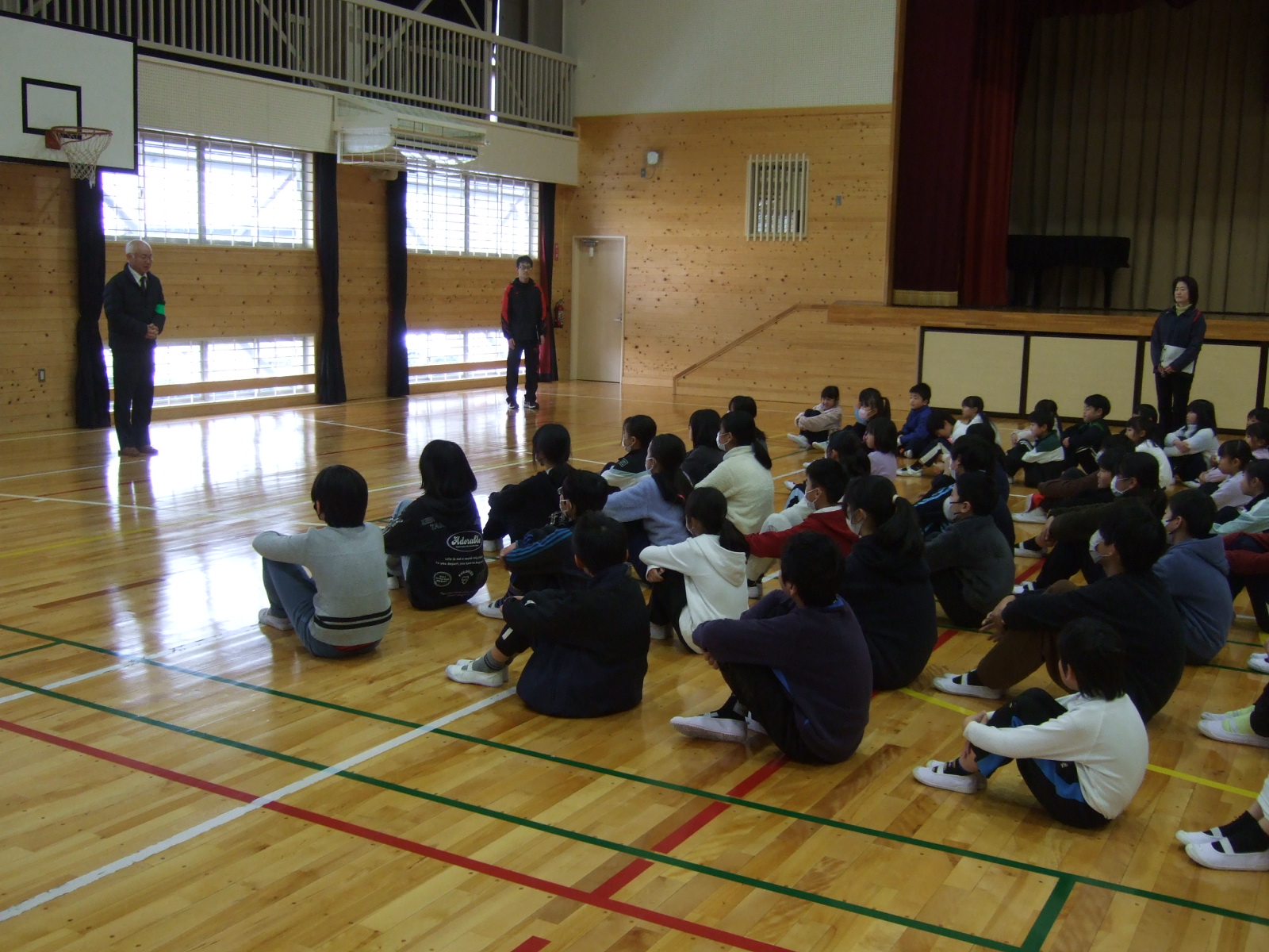 恵那警察署の生活安全課より来ていただいたお巡りさんからも、静かに、全員がそろって避難することが大切だと教えていただきました。(静かに避難しないと、不審者が気付いて、避難先に行ってしまうよ。恵那警察署の職員が10分後には必ず助けに来るから、それまで、避難をたのむよ)