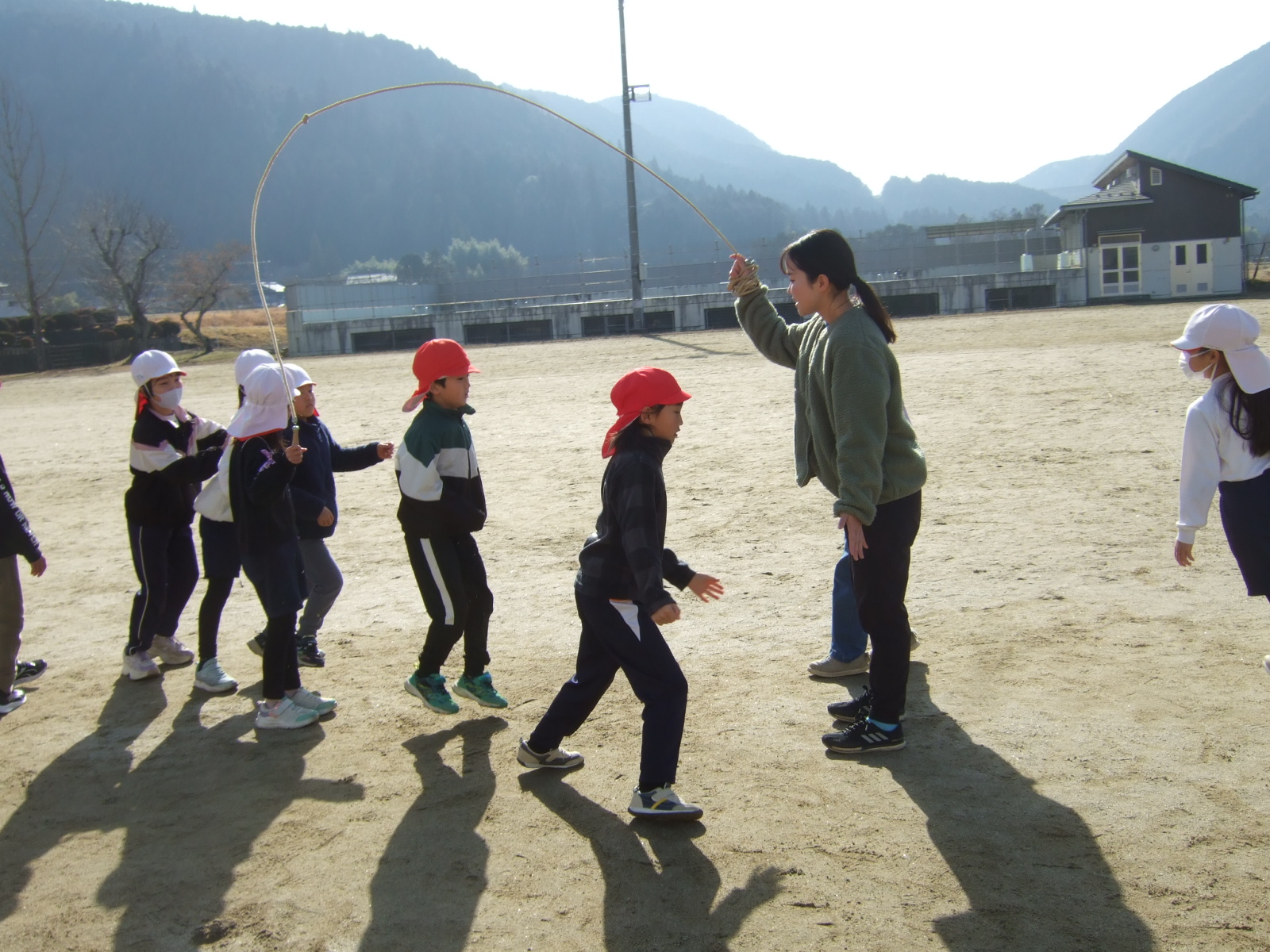 6年生は、人数の少なさを体力でカバーして、最高学年の意地を見せるのか、縄跳びというより、ほぼダッシュを繰り返しているようですね。