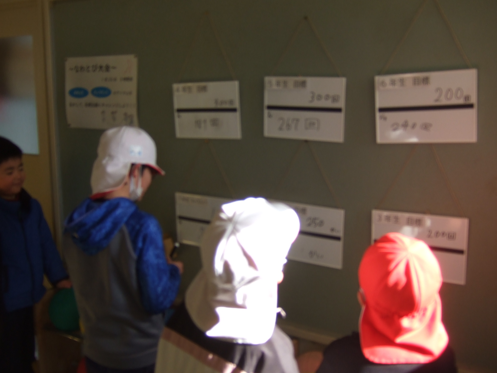 その記録をみて、闘志を燃やす子どもたちが・・・果たして、金曜日の3時間目が縄跳び大会ですので、そこまでに記録は・・・