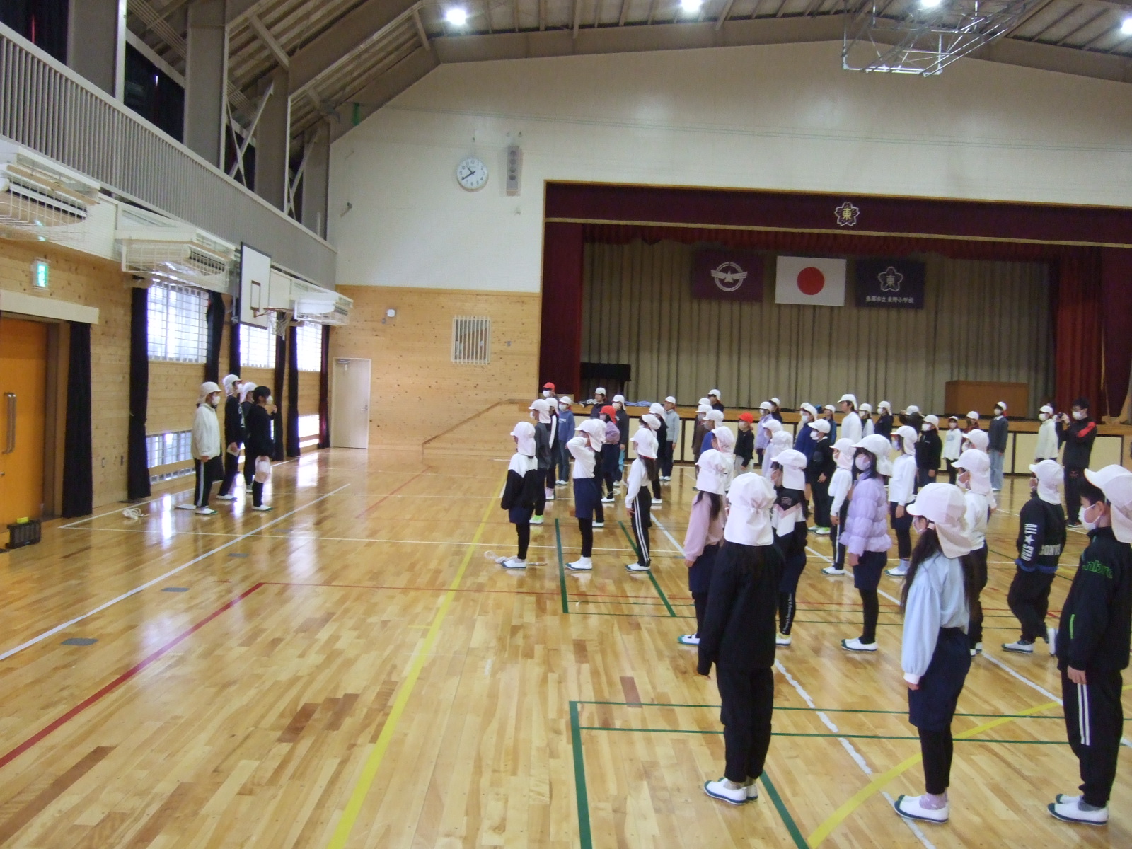 最後に、運動委員の6年生Sさんが、『この取り組みを通して、「すすんで」「協力」ができるようになってきたこと、「はい、はい」と声をかけてタイミングをみんなでとれたこと、ひっかかっても、「大丈夫」「おしい」うまくいった時には、「ナイス」「いいよ」と声を掛け合い、全校がこの取り組みを通して成長したのを実感しました。』と話してくれました。