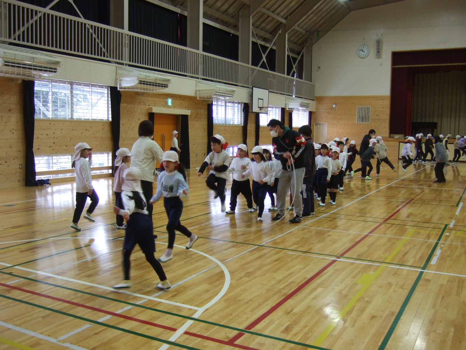 今日は、惜しくも新記録が出なかったクラスもありましたが、最初に決めた目標回数を何度も更新するほど、みんなで一つの目標に向けて頑張れた素晴らしい縄跳び大会になりました。