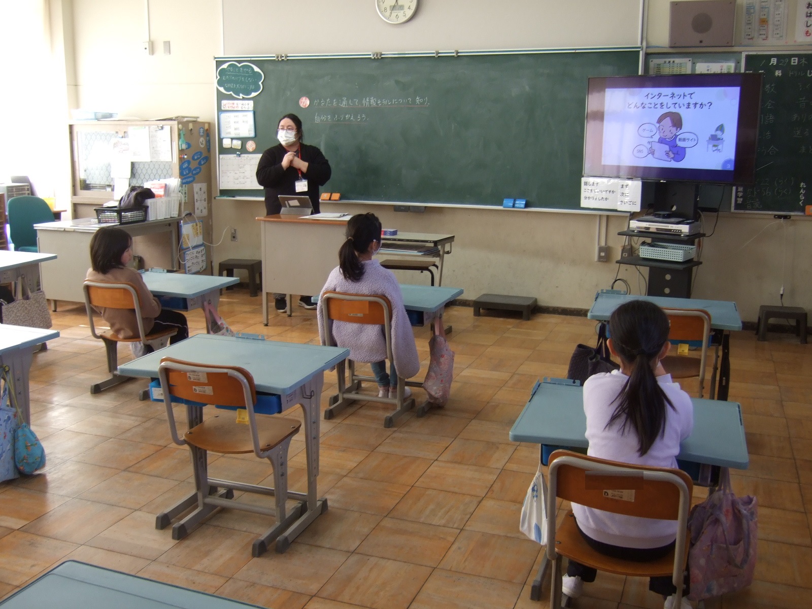 今日は、特別に、3年生の教室に情報担当の先生が来て、授業をしてくれました。