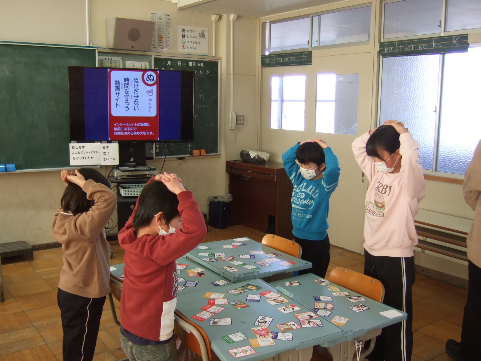 そんな中で、使い方の約束やマナーなど一つ一つ覚えていく必要があることがあります。今日はカルタを通して勉強しましたが、これからも繰り返し学校でも学習していきますので、ご家庭でもそんな話を時に応じてお願いします。